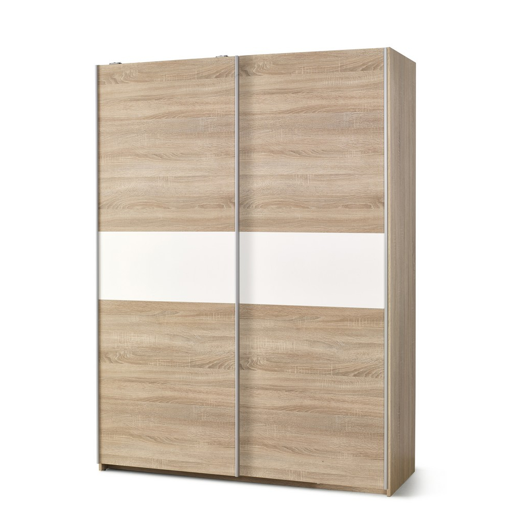 Konštrukcia šatníkovej skrine je vyrobená z laminovaných dosiek vo vysokom lesku s ABS hranou. Dodávame ju v 3 farebných prevedeniach - v bielej, dub sonoma a v kombinácii bielej s dubom sonoma.
