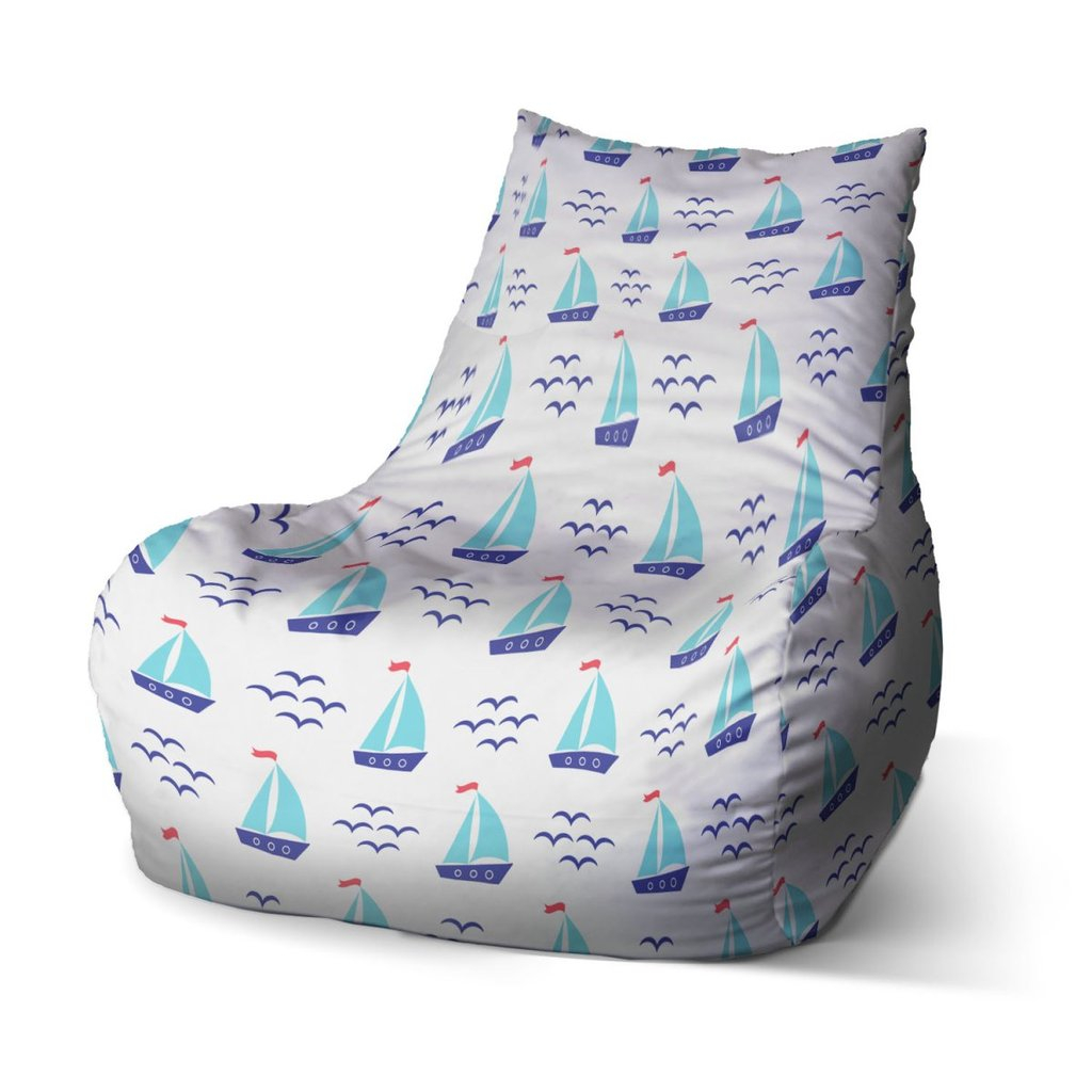 Sedací vak Bean modré loďky - detský, biela / modrá