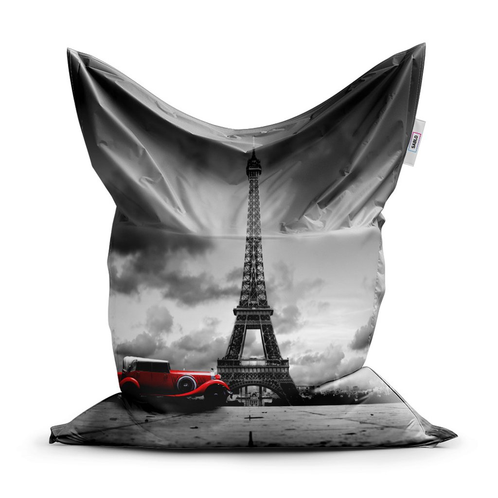 Sedací vak Classic Eiffel Tower s červeným autom - detský, sivá / čierna