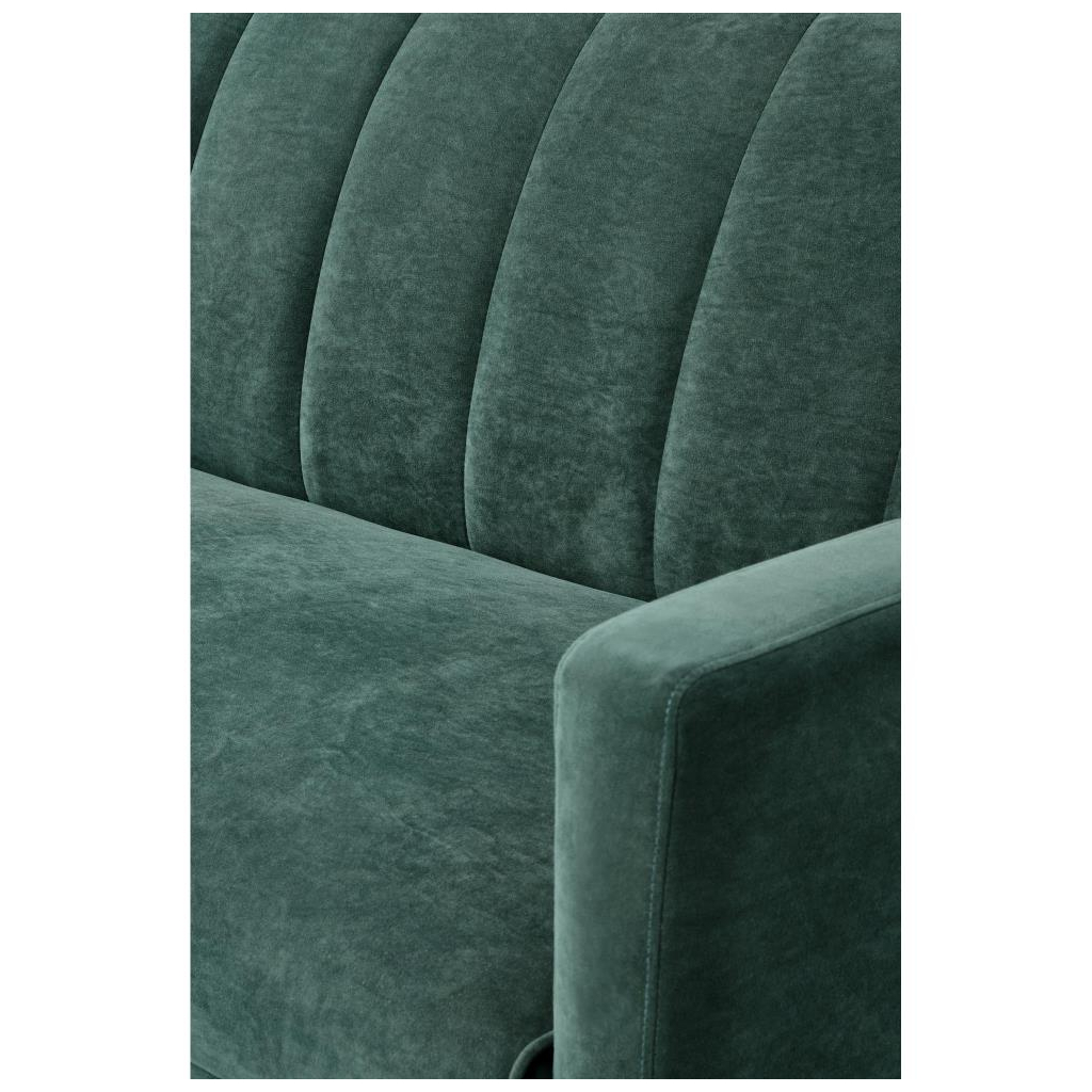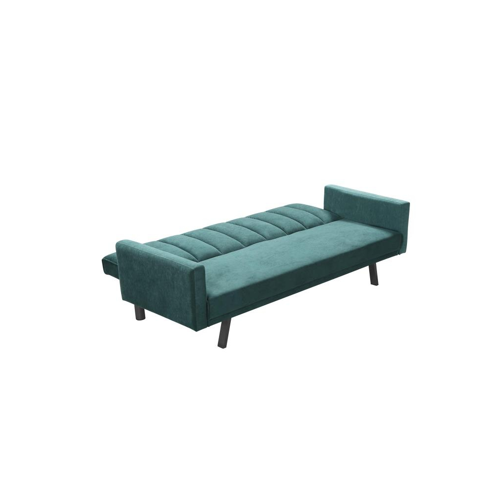 Pohovka je čalúnená zamatovou látkou, ktorá je veľmi príjemná. Stojí na štyroch oceľových nohách s čiernou práškovanou povrchovou úpravou. Pohovka je rozkladacia, poskytne vám teda aj viac priestoru.