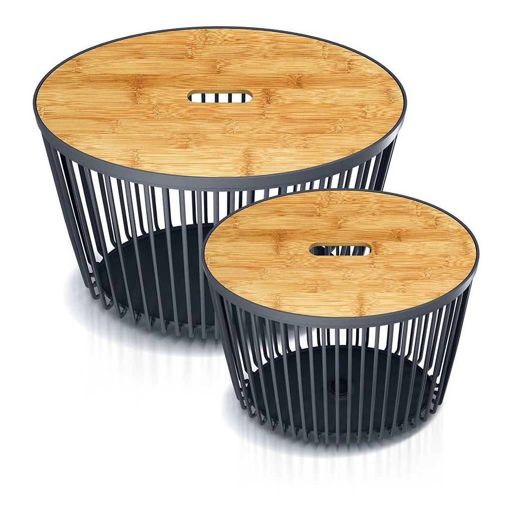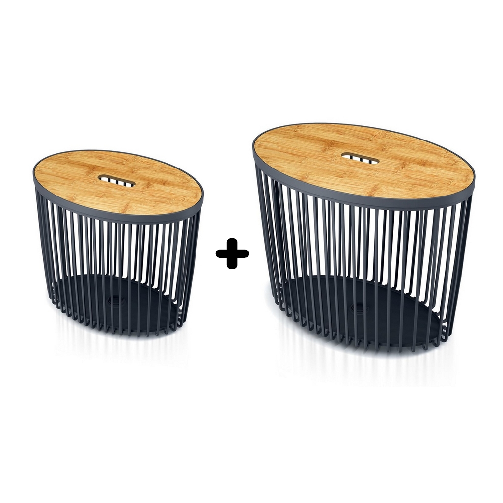 Tieto koše v sebe elegantne spojujú funkcie odkladacieho stolíka a úložného priestoru. Na bambusové veká si môžete odložiť napríklad čaj alebo knihu, priestor pod nimi potom využijete napríklad pre uloženie diek. Ponúka sa ale i dekoratívne využitie – do košov môžete dať napríklad farebné balóniky alebo kvetiny. Kreativite sa medze nekladú.