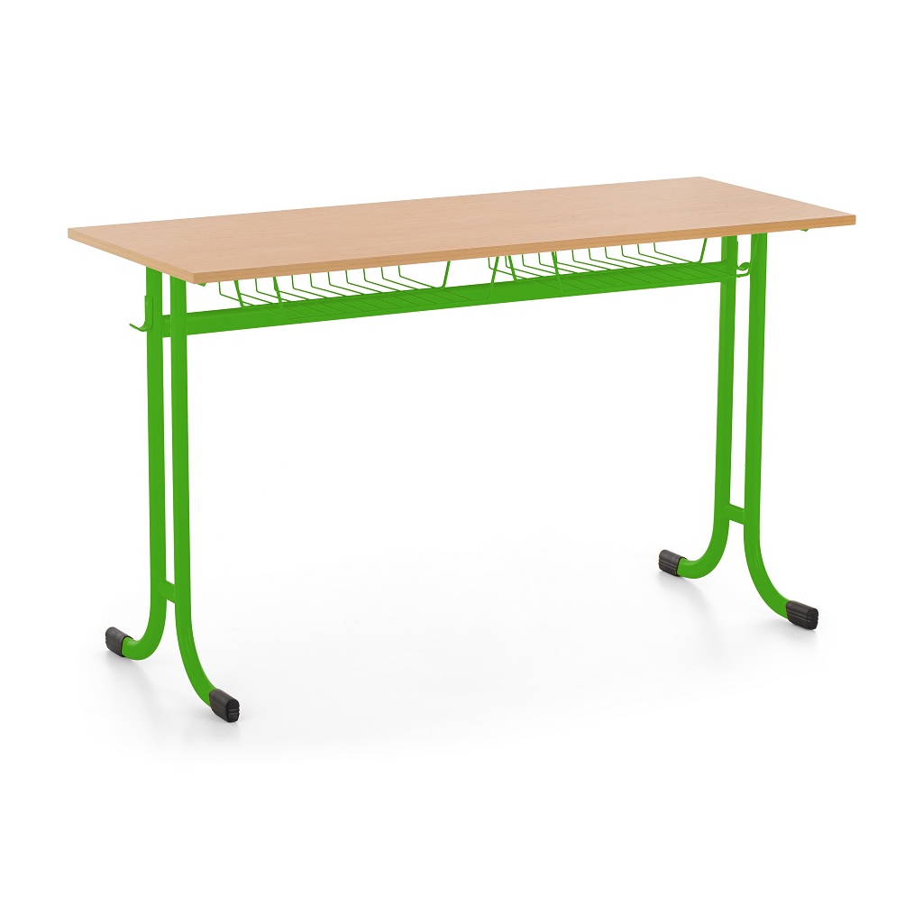 Dvojmiestna lavica Denis myslí taktiež na potreby žiakov. Pre každého z nich je pod doskou k dispozícii úložný priestor v podobe odkladacieho košíka. Bočná strana konštrukcie potom disponuje háčikom na zavesenie batohu pre každé pracovné miesto.