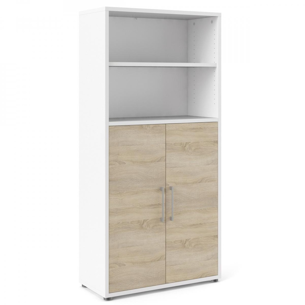 Skriňa Modulo 89 x 40 x 186 cm, dvere drevo, biela / dub sonoma