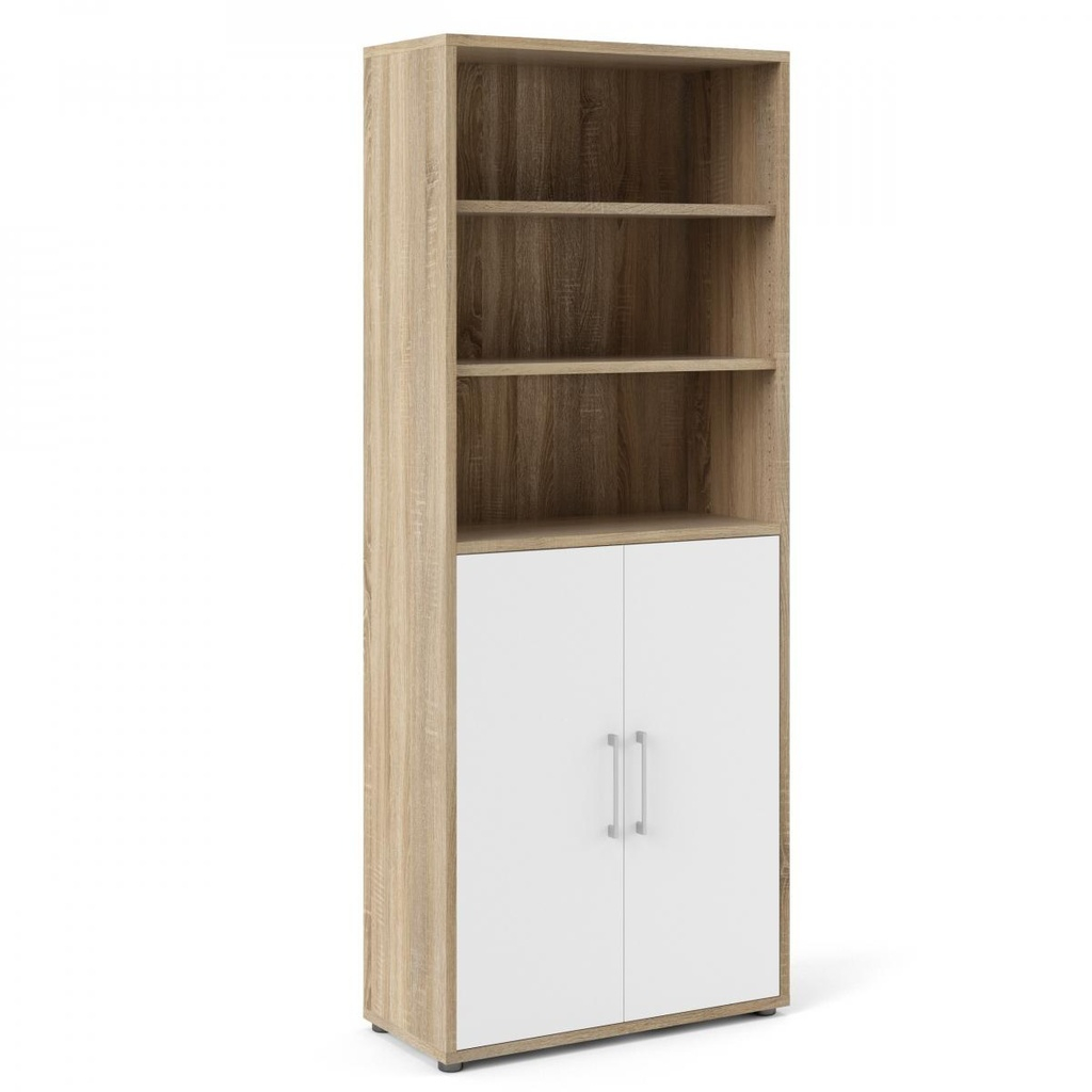 Skriňa Modulo je ideálnym riešením pre kancelárie aj domácnosti, kde potrebujete praktický a zároveň štýlový úložný priestor. Vďaka krídlovým dverám s dreveným povrchom pôsobí elegantne a solidne, pričom chránia obsah políc pred prachom a neželaným pohľadom.
