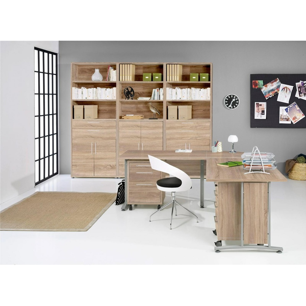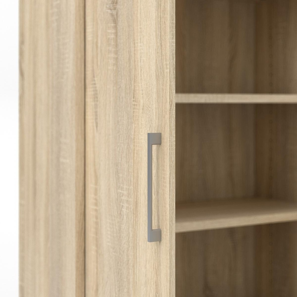 Skriňa Modulo je ideálnym riešením pre kancelárie aj domácnosti, kde potrebujete praktický a zároveň štýlový úložný priestor. Vďaka krídlovým dverám s dreveným povrchom pôsobí elegantne a solidne, pričom chránia obsah políc pred prachom a neželaným pohľadom.
