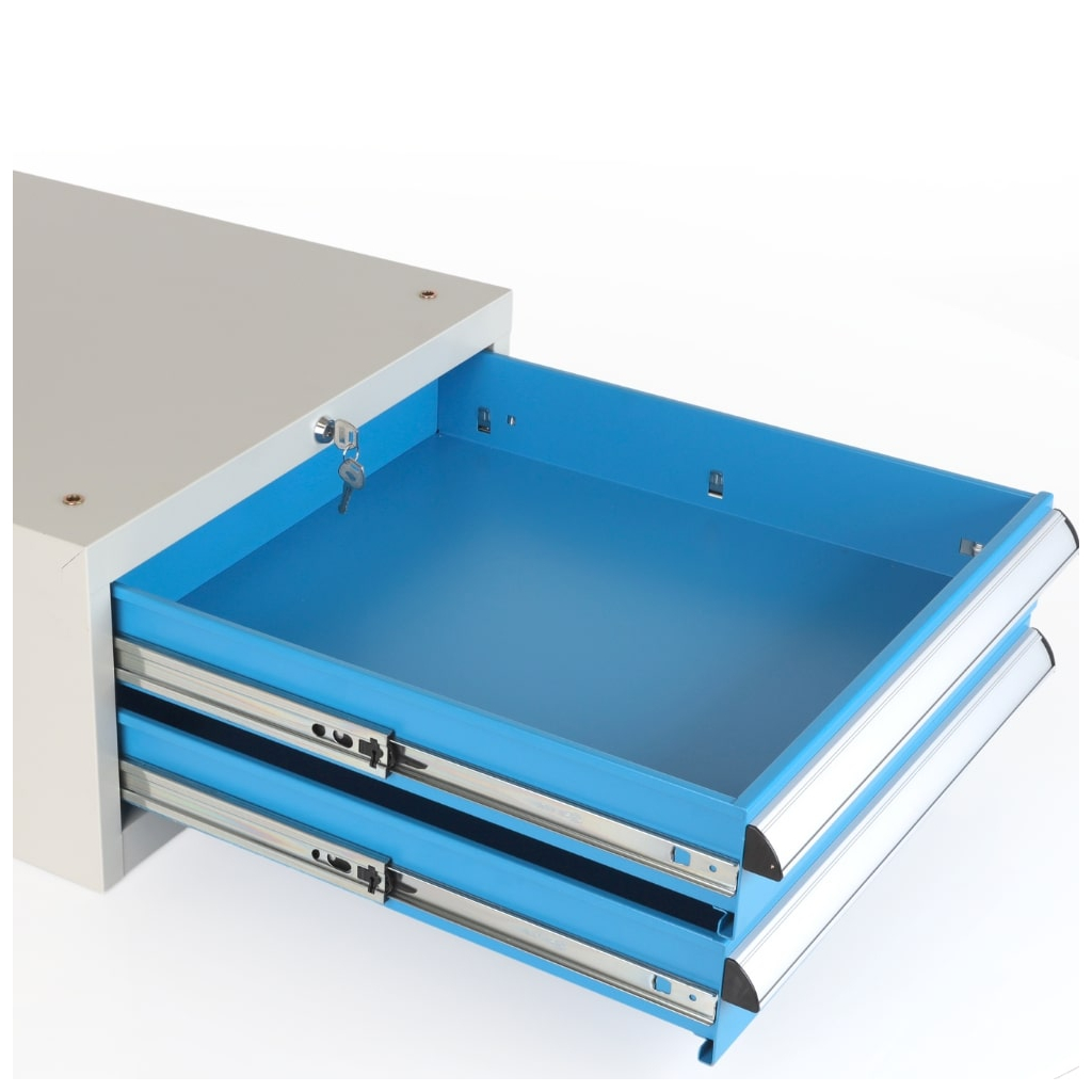 Vybavte svoj stôl úložným modulom, kam si odložíte náradie alebo súčiastky, ktoré práve nepotrebujete. Dvierka sú lakované štandardným odtieňom RAL 5012, aby dokonale ladili aj s ďalším dielenským nábytkom.