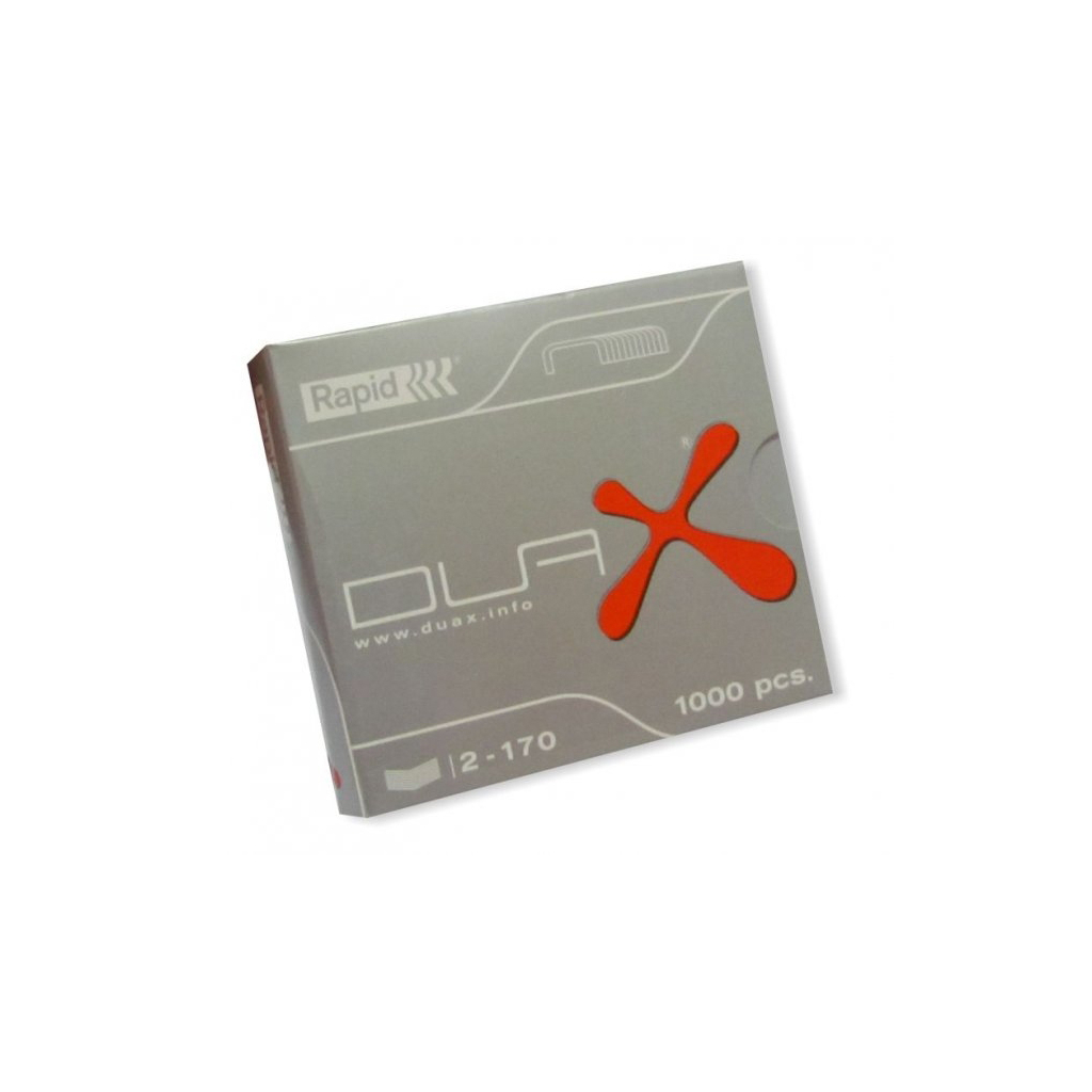 Spinky Rapid Duax sú vhodné pre model zošívačky Rapid Duax. Zásluhou pevného materiálu nedochádza k ich lámaniu a opotrebovaniu ani po dlhodobej manipulácii so zviazaným dokumentom. Jedná sa o univerzálne spinky pre variabilné hrúbky zväzkov. Odporúčame nimi zošívať maximálne 170 listov papiera k sebe, aby nedošlo pri aplikácii k ich nežiadúcemu skriveniu či ohnutiu. Balenie obsahuje 1000 spiniek.
