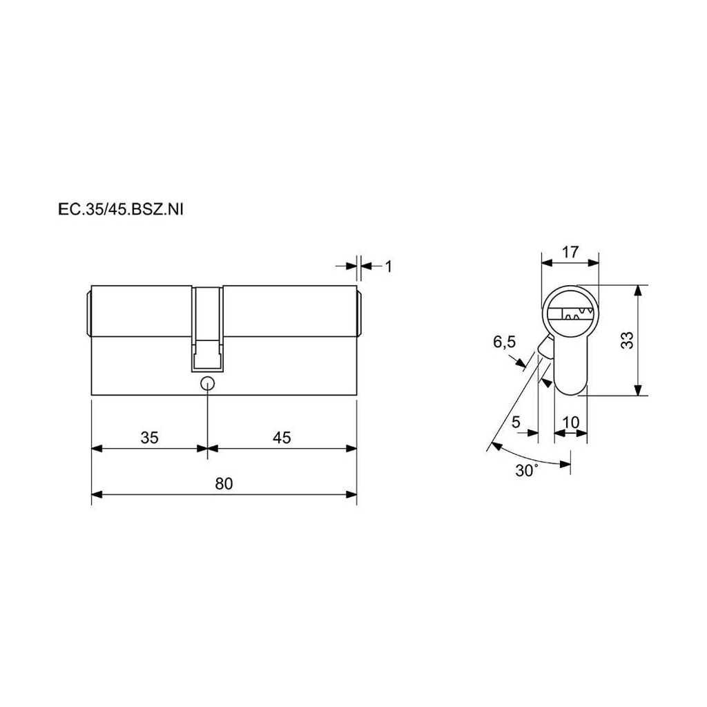 Stavebná vložka EC 35/45.BSZ s prestupovou spojkou, nikel