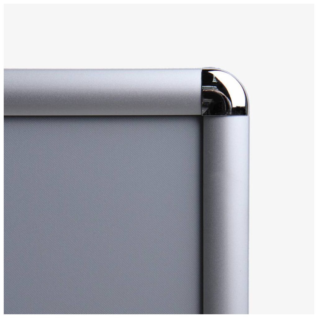 Konštrukcia stĺpika je vyrobená z pevného kovu a vďaka rozšírenej štvorcovej základni je veľmi stabilný. Jednoduchosť klaprámu spočíva v pohodlnom sklopení jednej či viac strán rámu a následnej inštalácii obsahu, ktorú zvládne úplne každý. Obsah klaprámu je naviac zabezpečený 25 mm rámom s oblými rohmi a ochrannou UV fóliou proti vyblednutiu.