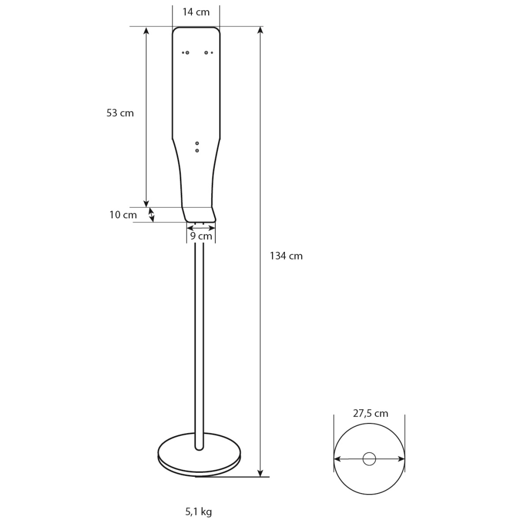 Stojan na dávkovač je výborným riešením pre hygienu do verejných priestorov. Konštrukcia stojanu je vyrobená z pevného kovu a vďaka rozšírenej štvorcovej základni je veľmi stabilná.