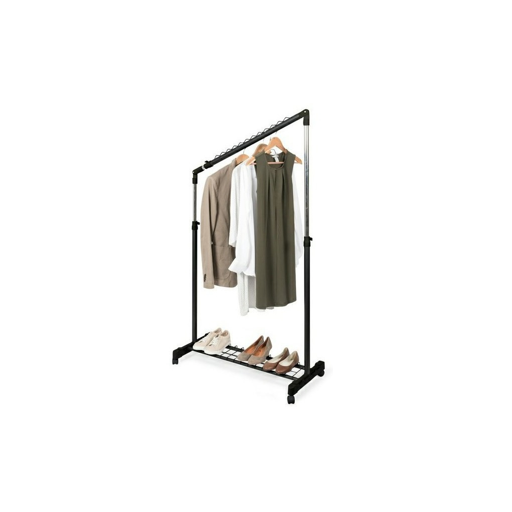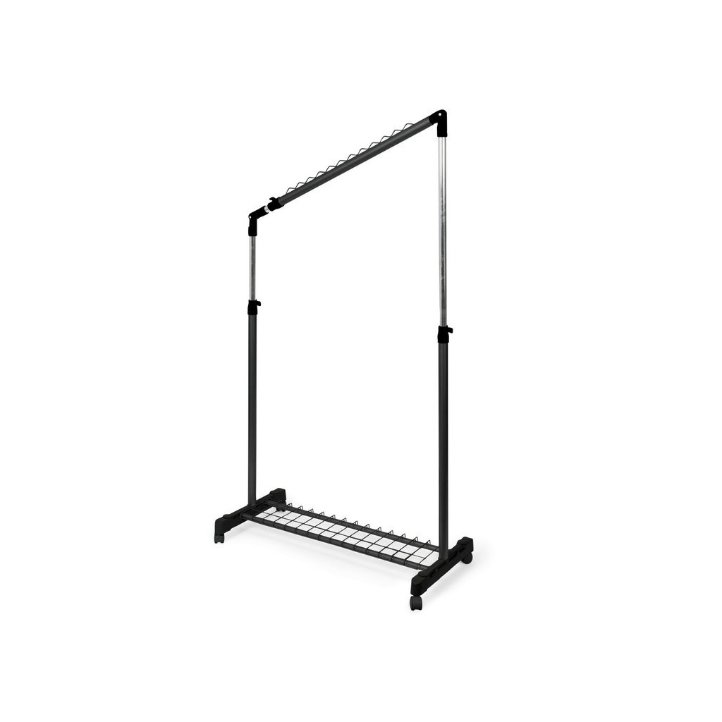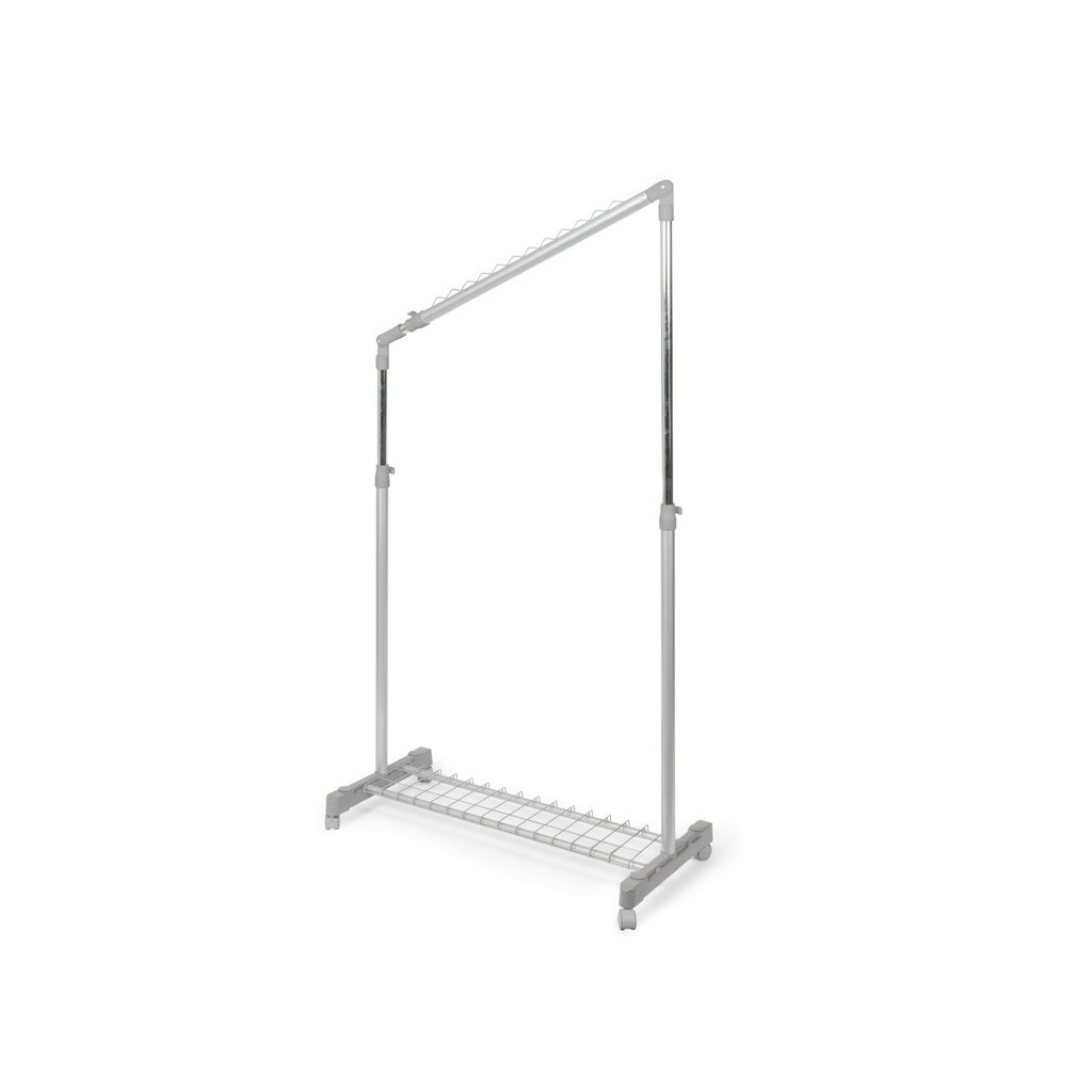 Stojan je vyrobený v kombinácii kovu s plastovými časťami. Disponuje tyčou na zavesenie odevov a spodnou mriežkou na uloženie topánok. Výhodou stojanu je možnosť výškového nastavenia závesnej tyče od 102 do 170 cm. Pre jednoduchú manipuláciu po priestore isto oceníte tiež kolieska.