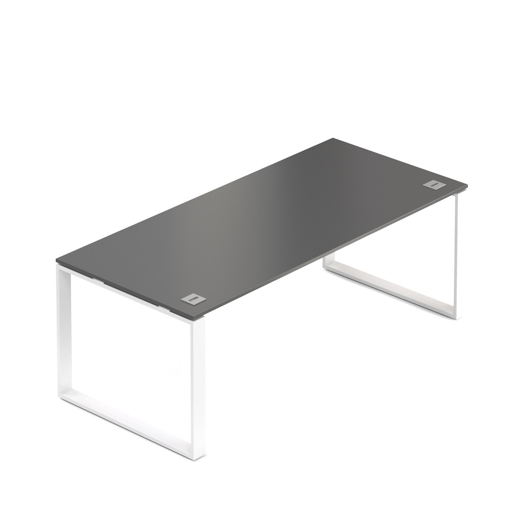 Stôl Creator 200 x 90 cm, biela podnož, 2 nohy, antracit
