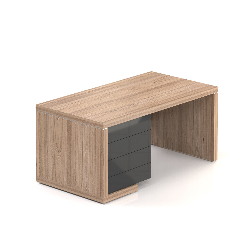 Stôl Lineart 160 x 85 cm + ľavý kontajner, brest svetlý / antracit