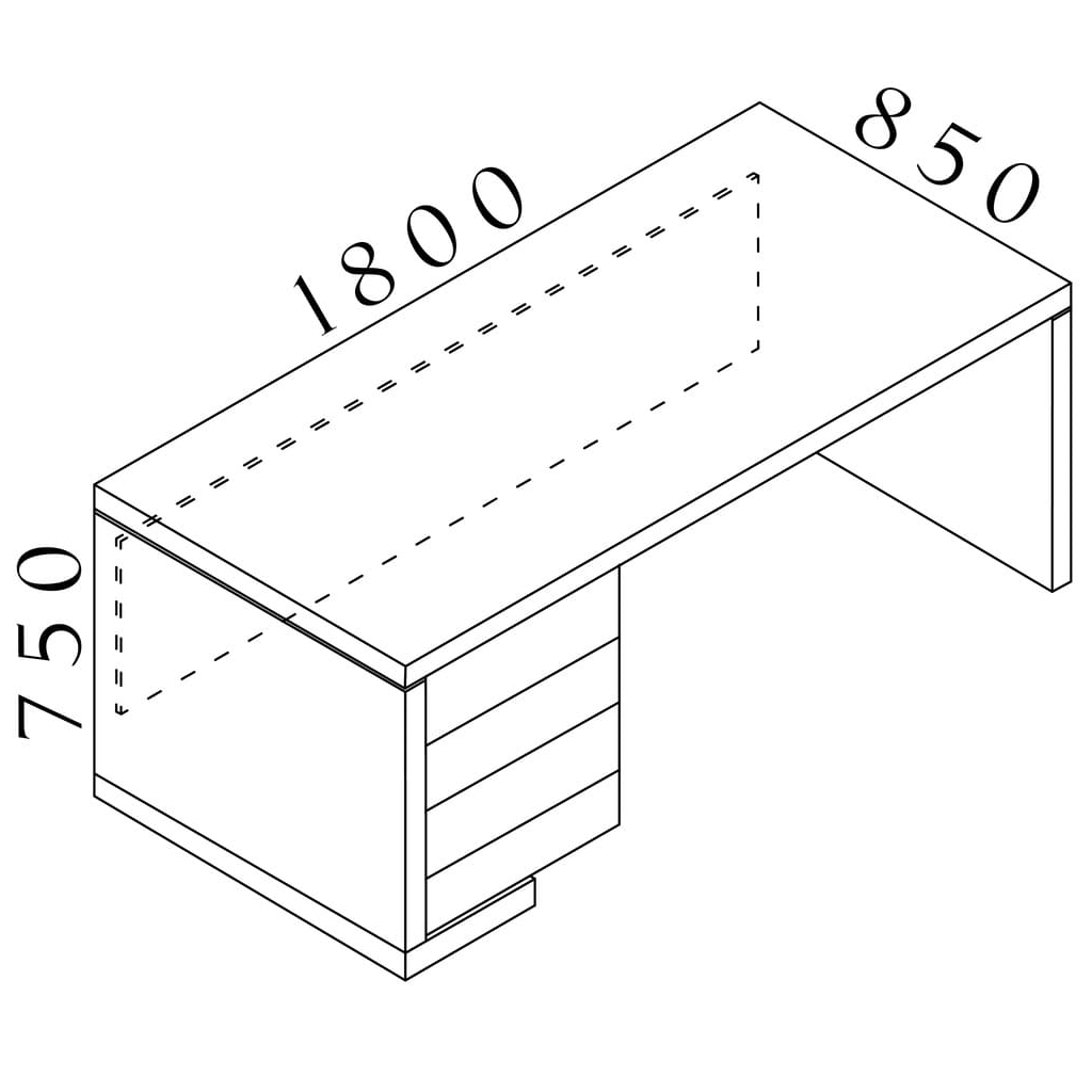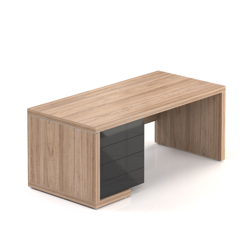 Stôl Lineart 180 x 85 cm + ľavý kontajner, brest svetlý / antracit