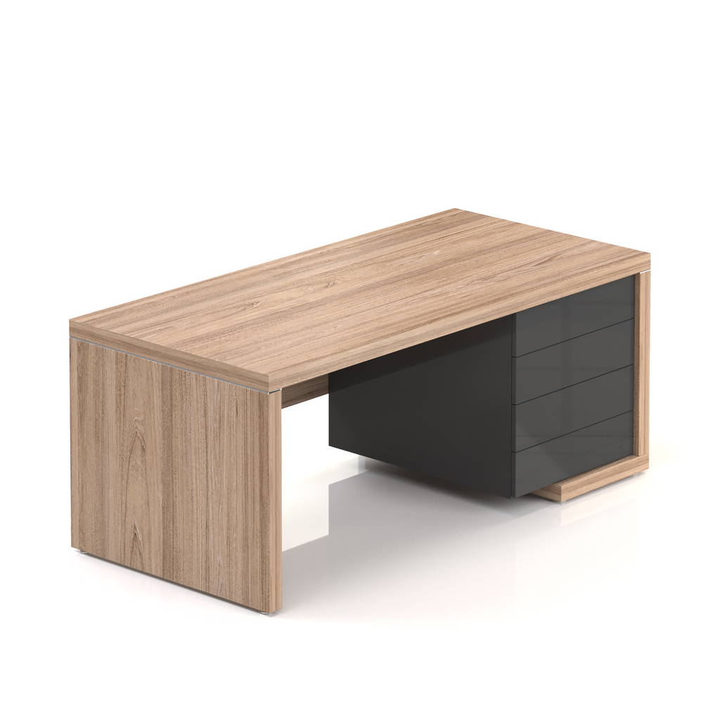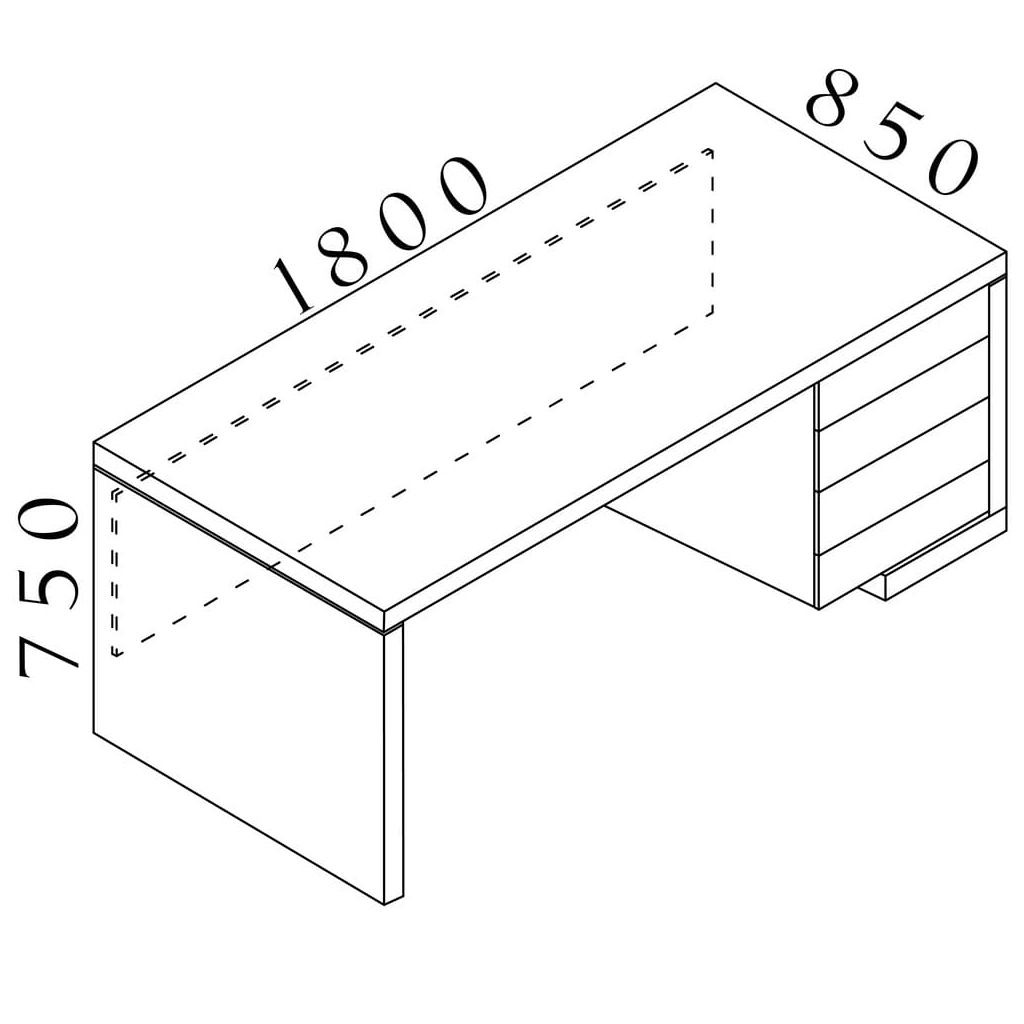 Stôl Lineart 180 x 85 cm + pravý kontajner, brest svetlý / antracit