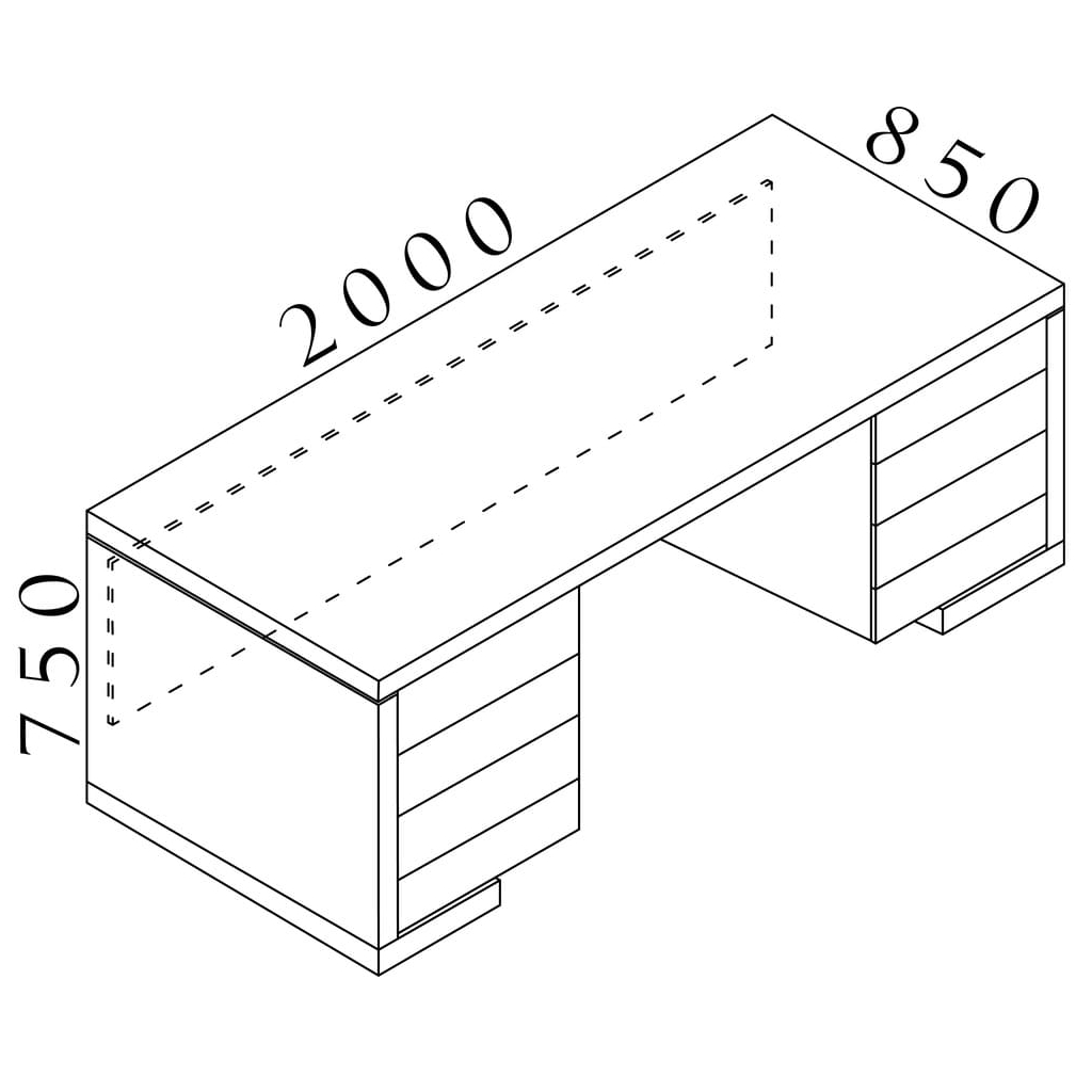 Stôl Lineart 200 x 85 cm + 2 x kontajner, brest tmavý / biela