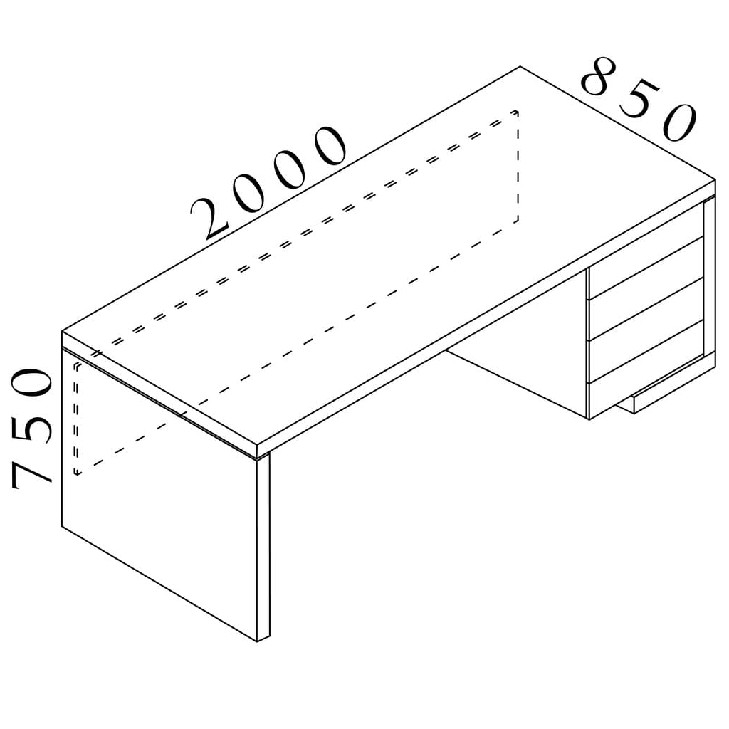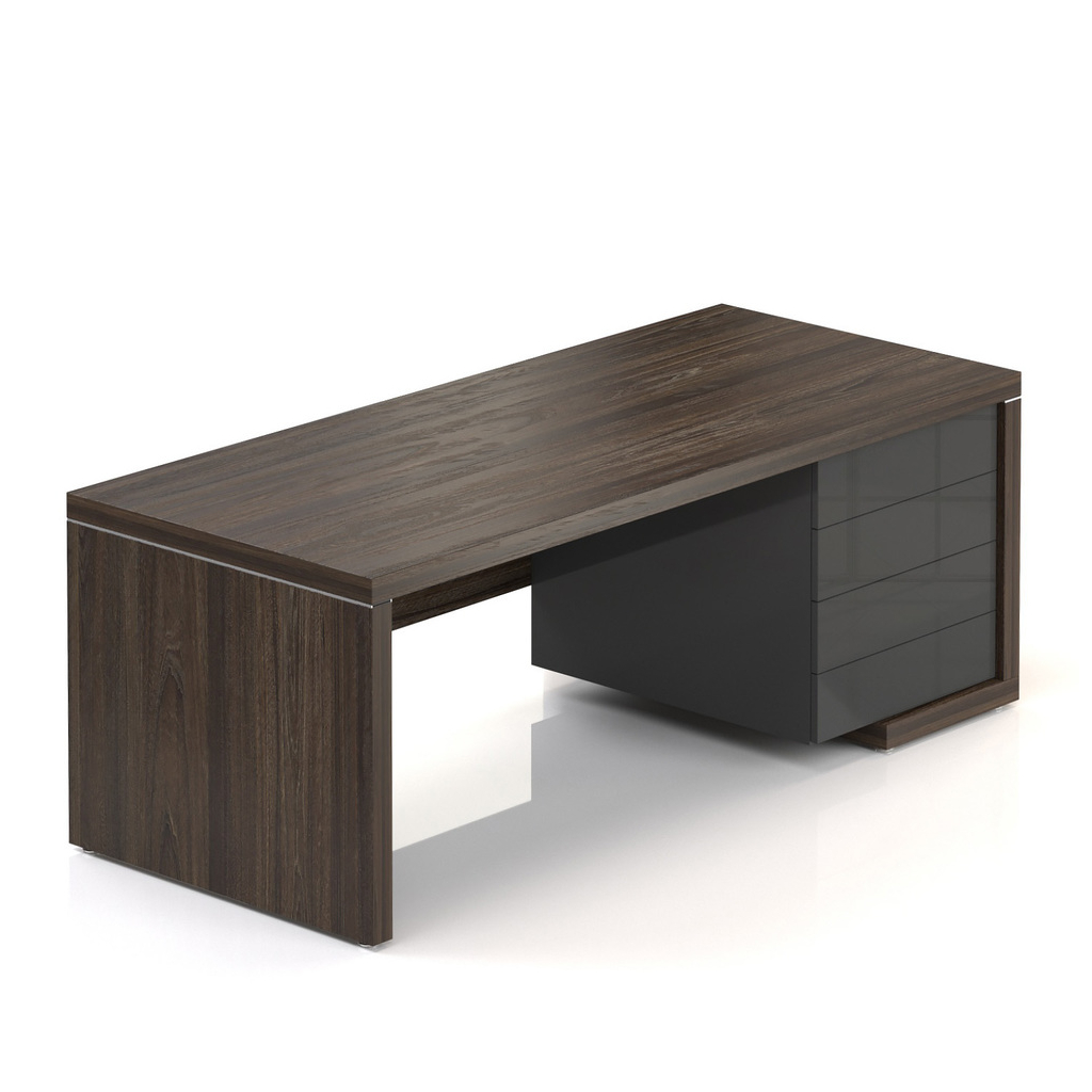 Stôl Lineart 200 x 85 cm + pravý kontajner, brest tmavý / antracit