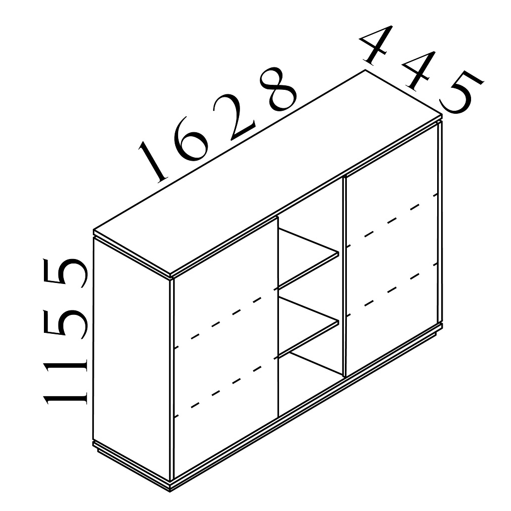 Stredná skriňa Creator obsahuje 2 police, ktoré pri rovnomernom zaťažení disponujú nosnosťou až 30 kg. Korpus aj dosky skríň majú hrúbku 18 mm.