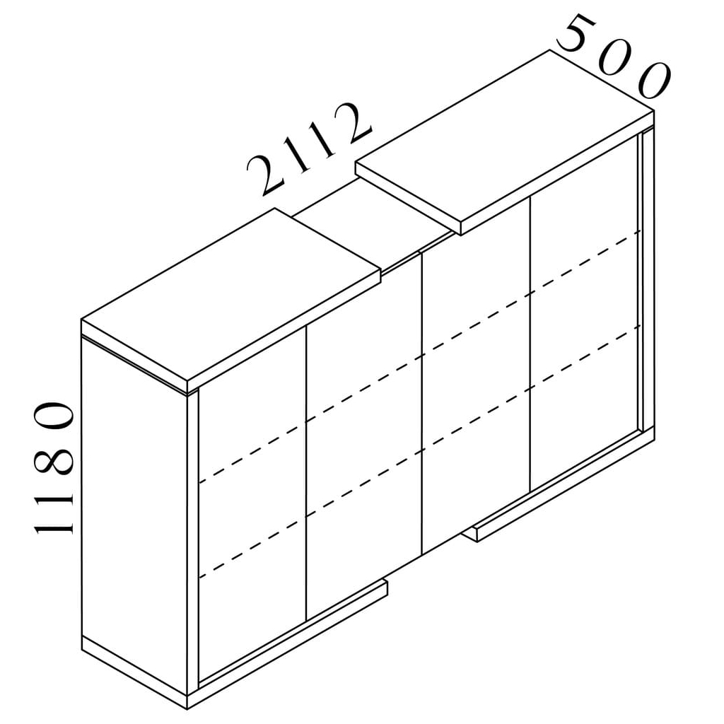 Stredná skriňa Lineart je vzhľadom k svojmu spracovaniu vhodná do riaditeľských kancelárií a pracovní, kde sa bude skvelo vynímať vďaka unikátnym farebným variantom. Skriňa má rozmery 211,2 x 50 x 118 cm a v kombinácii s ďalšími prvkami tohto radu vytvorí autoritatívny dojem a vyzdvihne vaše vodcovské schopnosti.