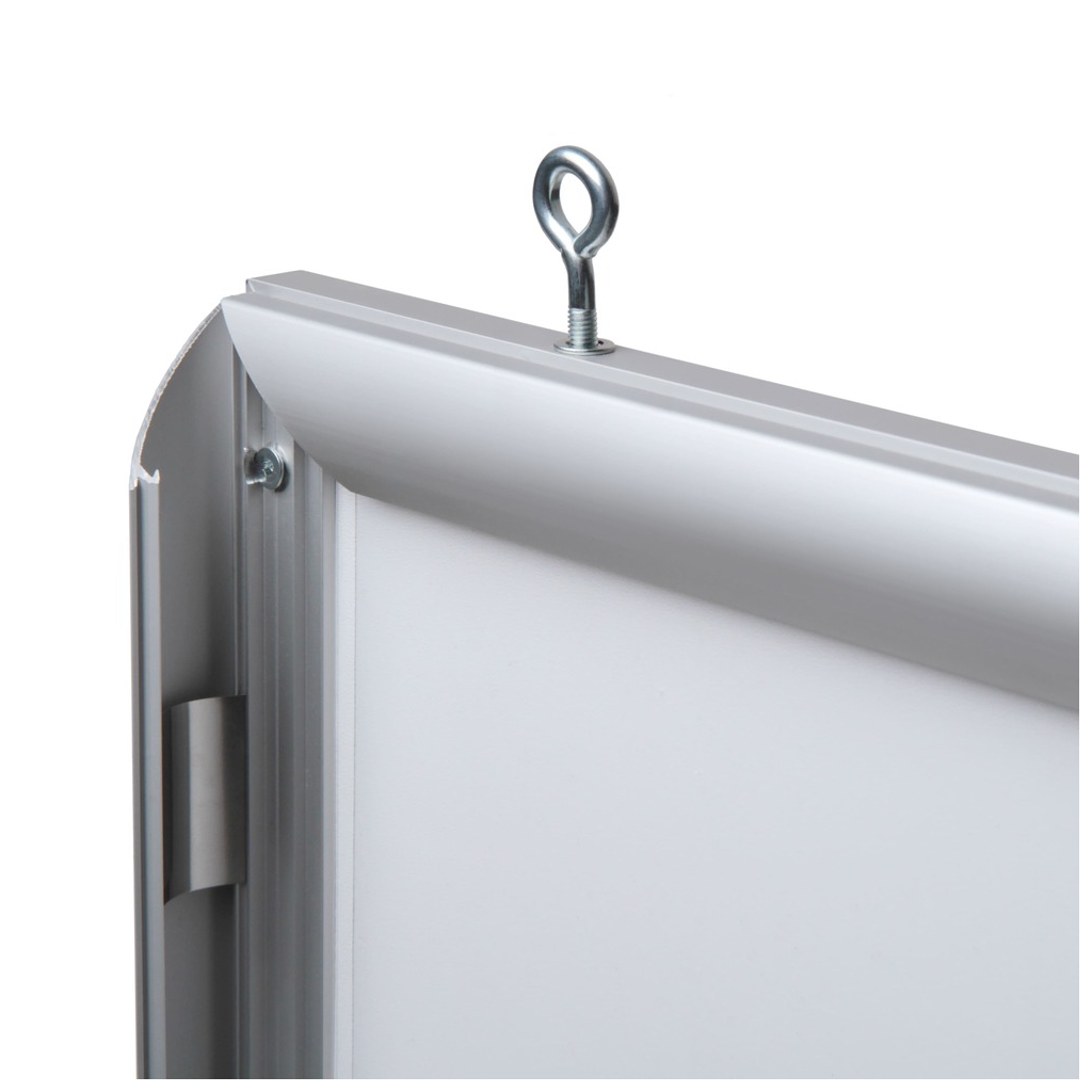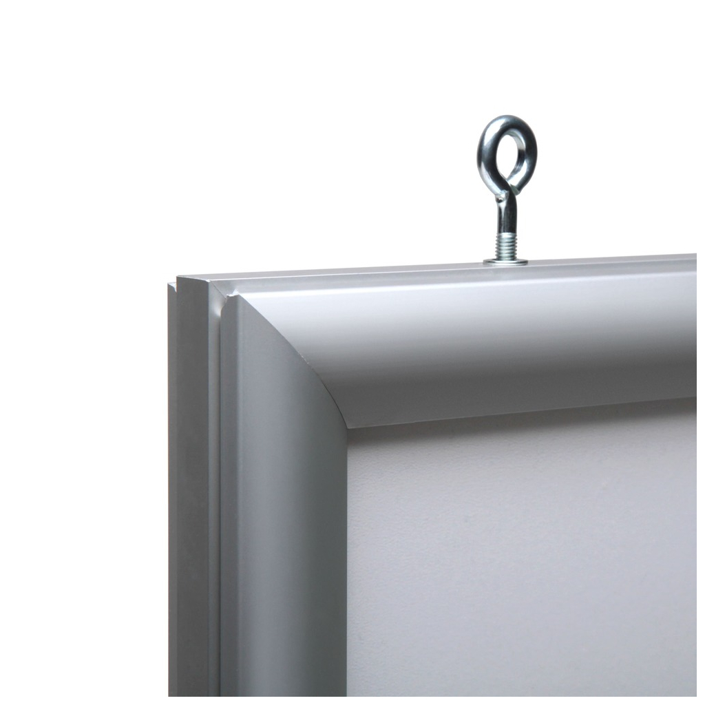Výmena tlačoviny nebola nikdy jednoduchšia, pretože stačí iba sklopiť jednu zo strán rámu a váš obsah pohodlne vložiť a zavesiť na skrutky s okami.