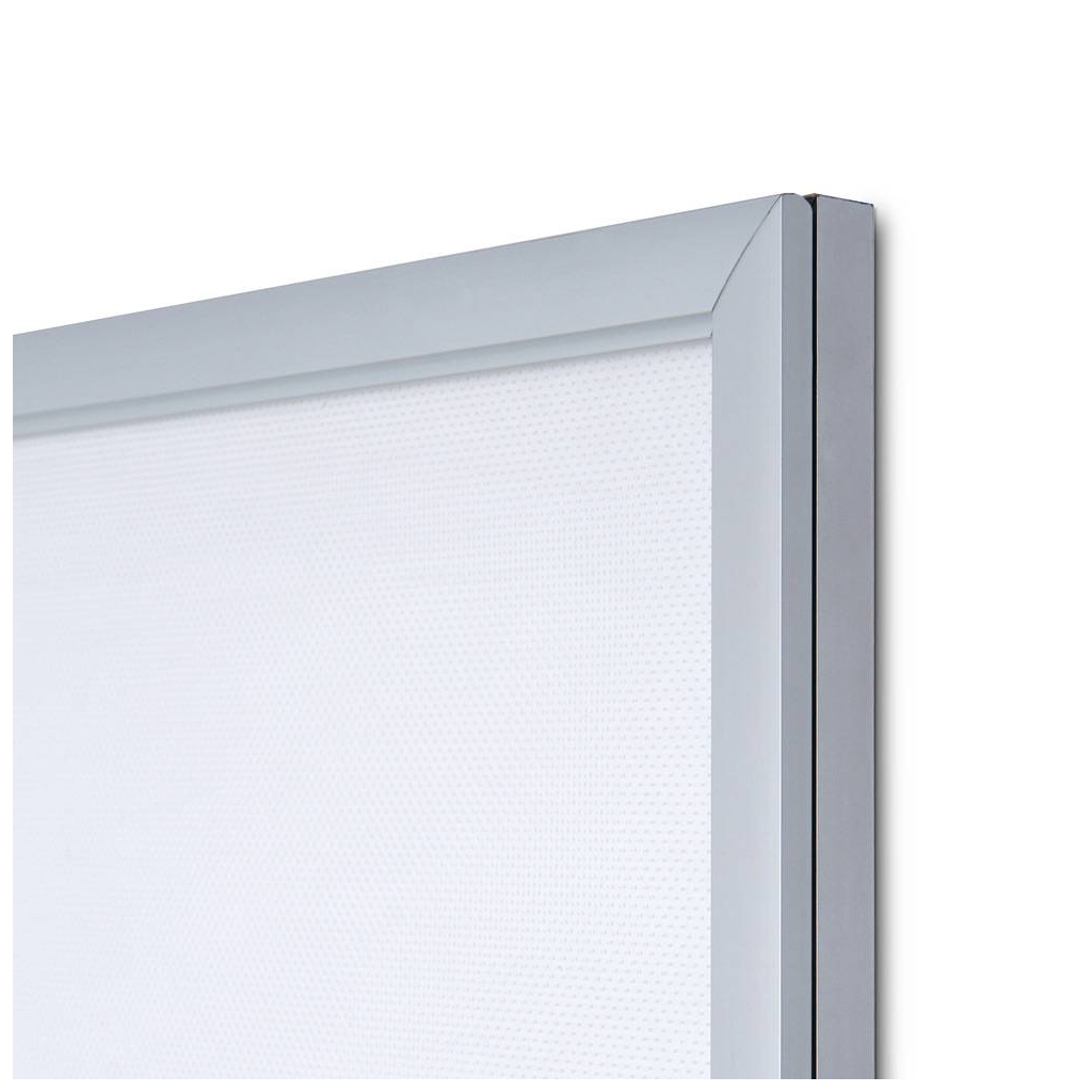 Rám s profilom 19 mm je vyrobený z pevného eloxovaného hliníka, ktorý je veľmi odolný a spoľahlivo tak ochráni prezentovaný obsah.