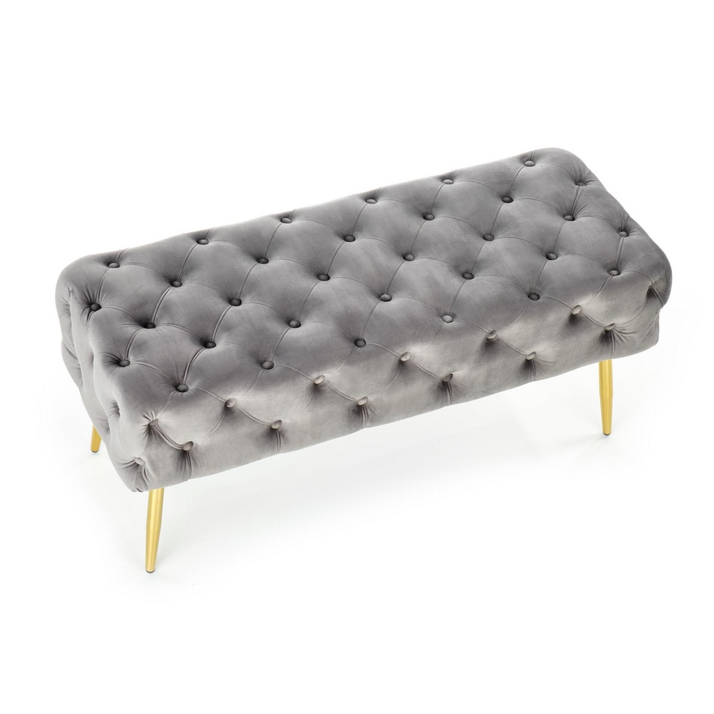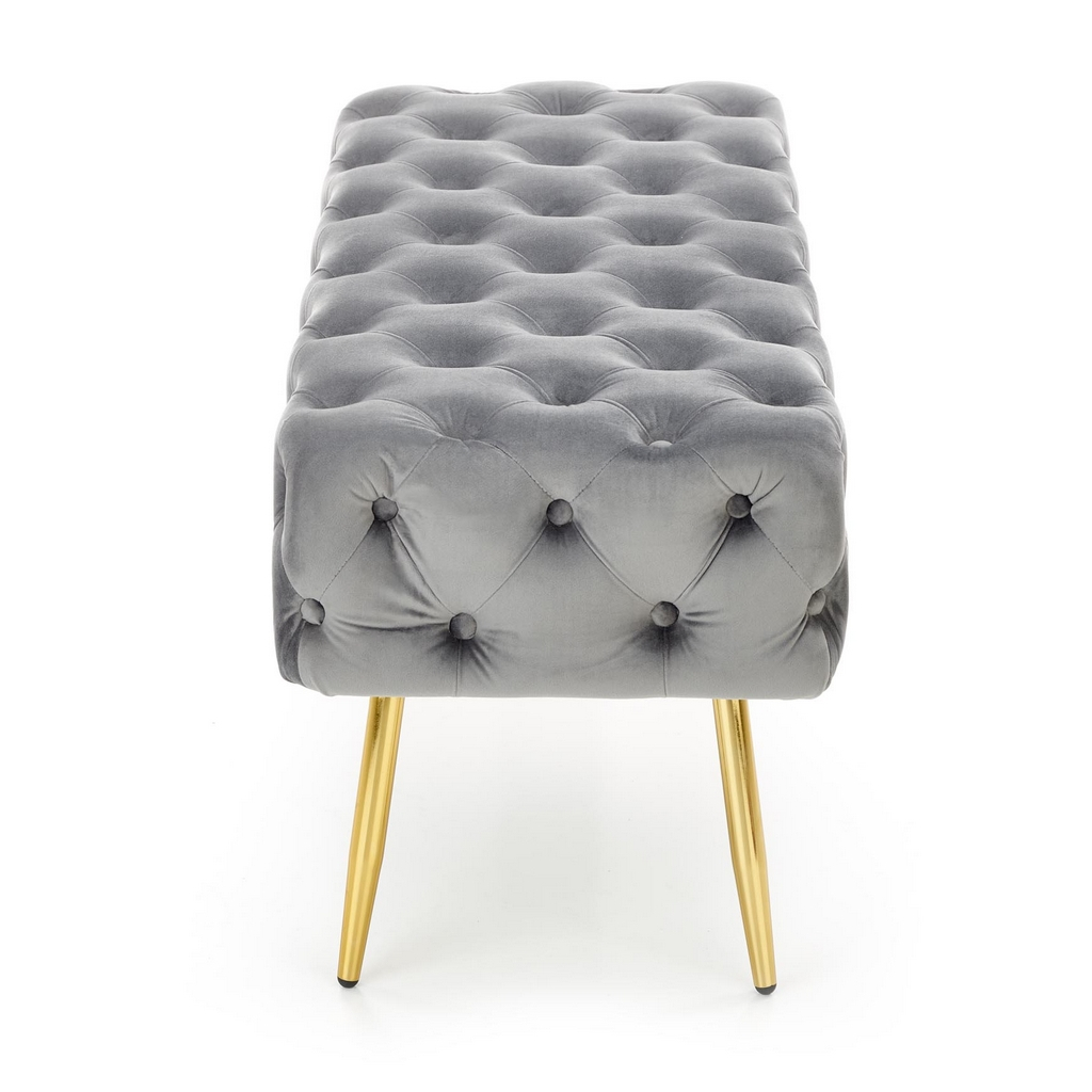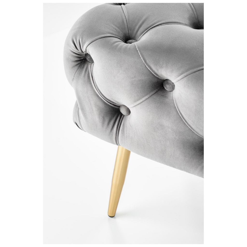 Dodajte svojej obývačke alebo relax zóne trochu pompy s taburetom Athena. Na sedadle potiahnutom prešívanou zamatovou látkou si posedíte ako v bavlnke, o stabilitu a ďalšiu dávku elegancie sa potom postarajú pozlátené nohy z ocele.