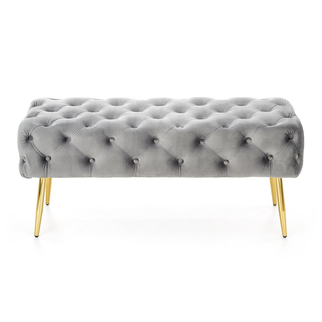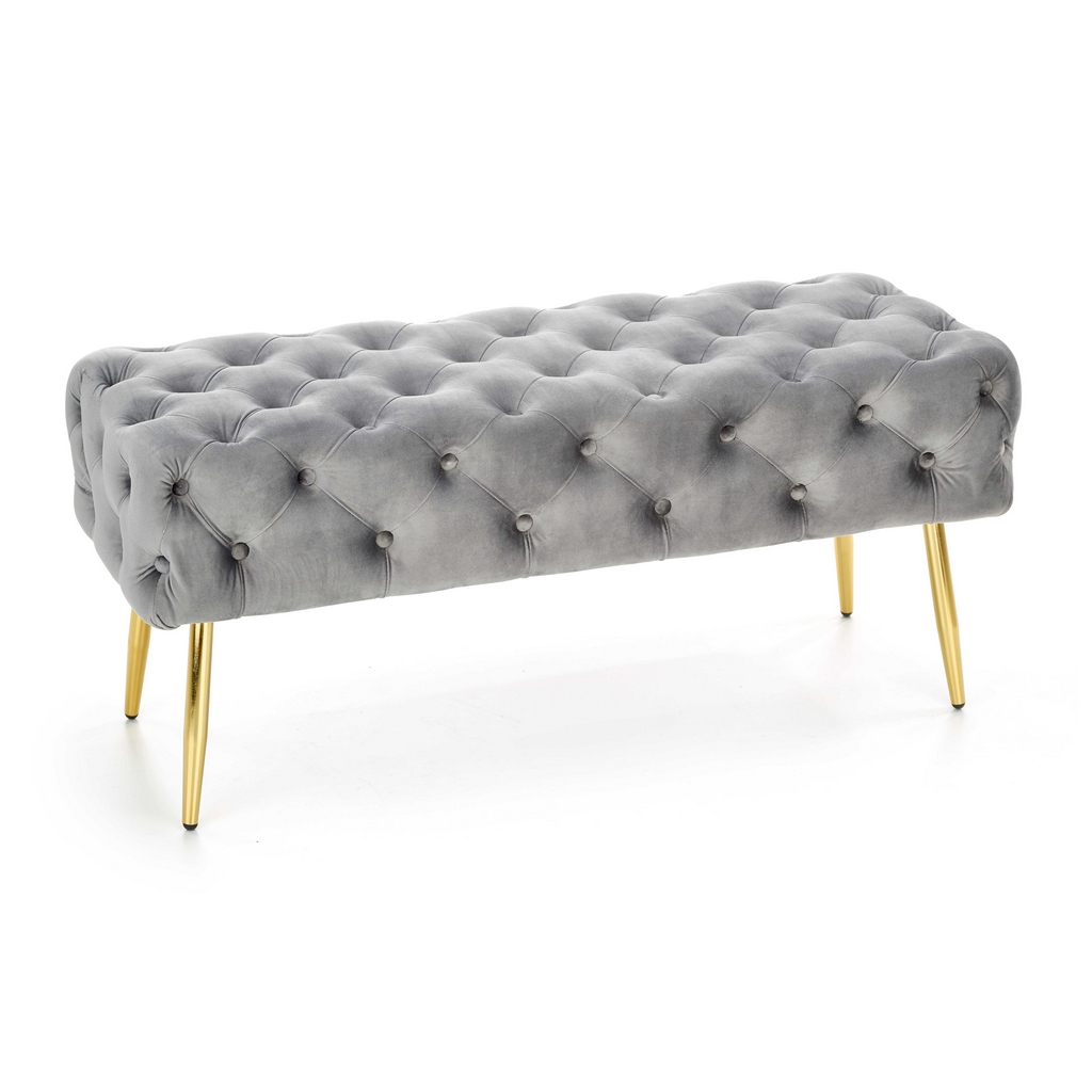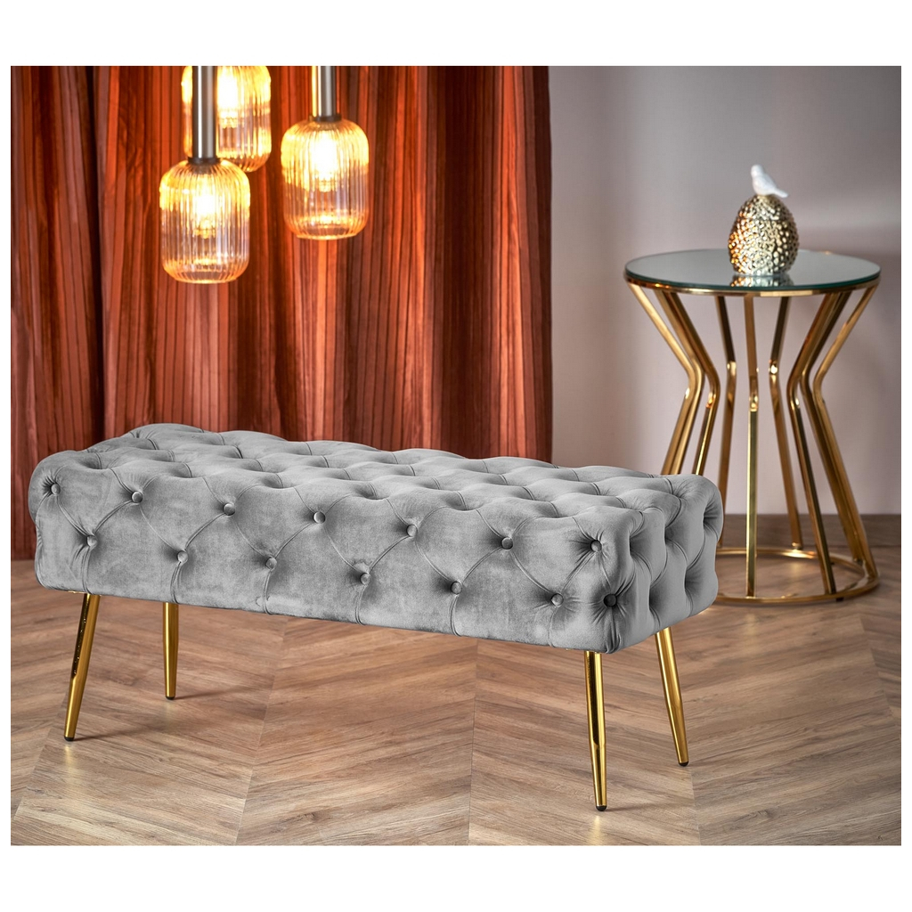 Dodajte svojej obývačke alebo relax zóne trochu pompy s taburetom Athena. Na sedadle potiahnutom prešívanou zamatovou látkou si posedíte ako v bavlnke, o stabilitu a ďalšiu dávku elegancie sa potom postarajú pozlátené nohy z ocele.
