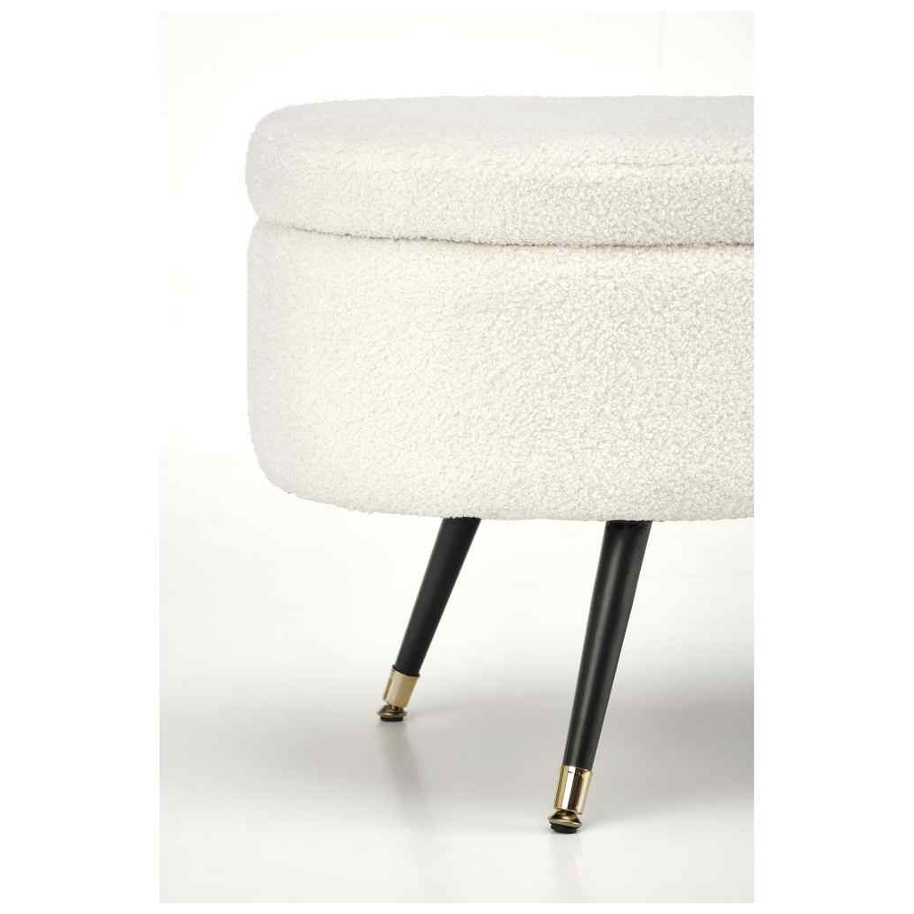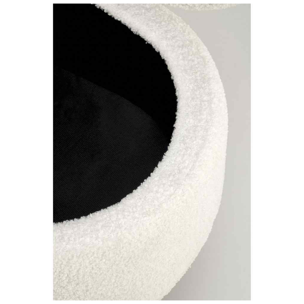 Taburet je potiahnutý príjemnou buklé tkaninou, ktorá pripomína ovčiu srsť. Posedenie na ňom je preto príjemným zážitkom.
