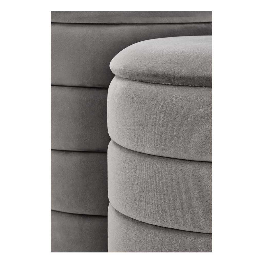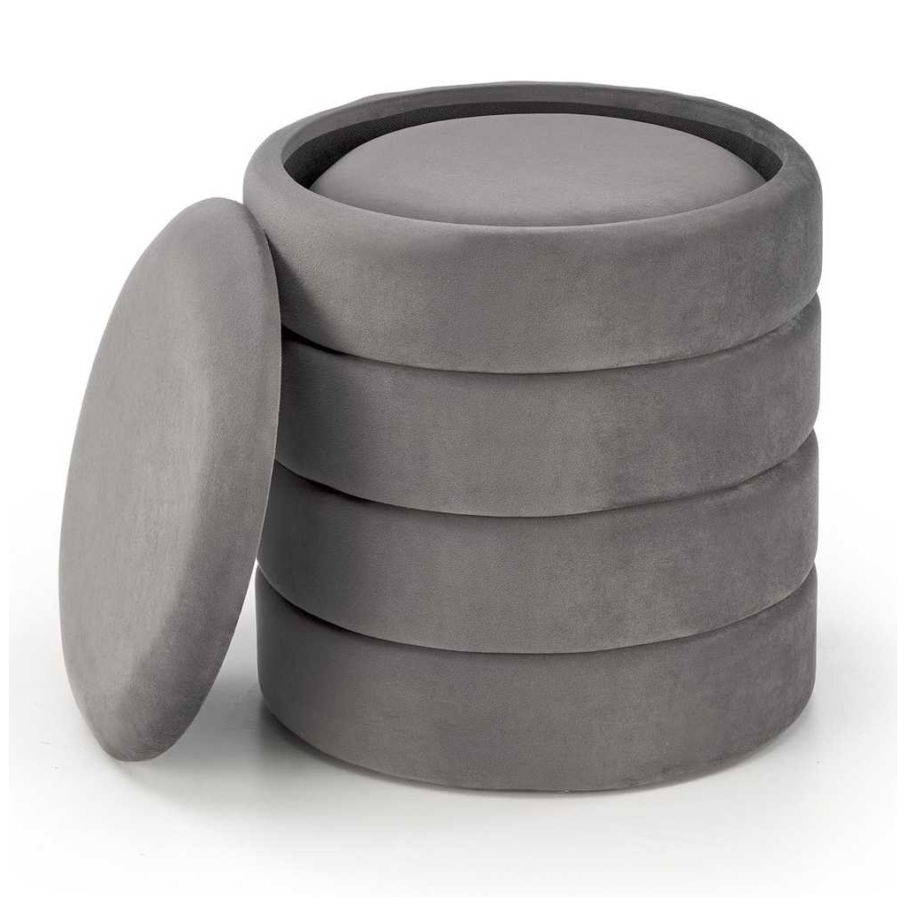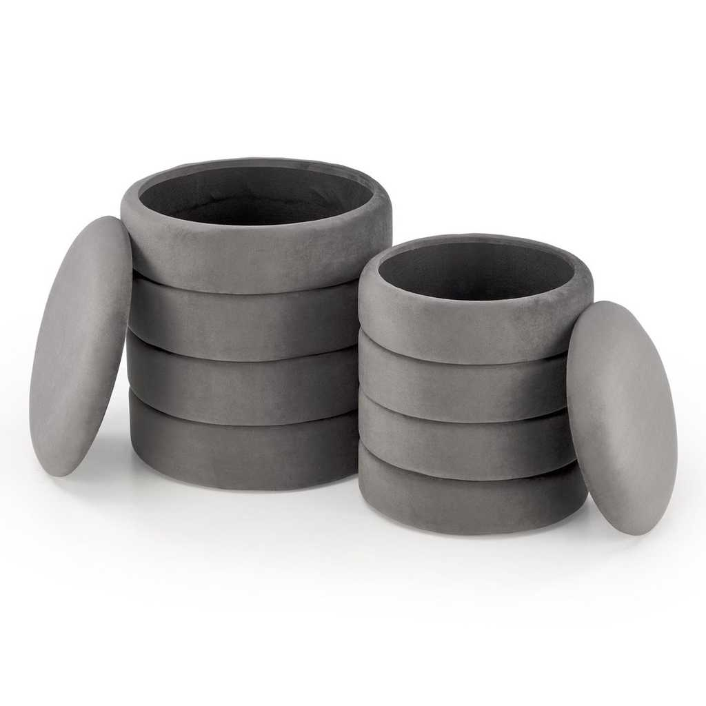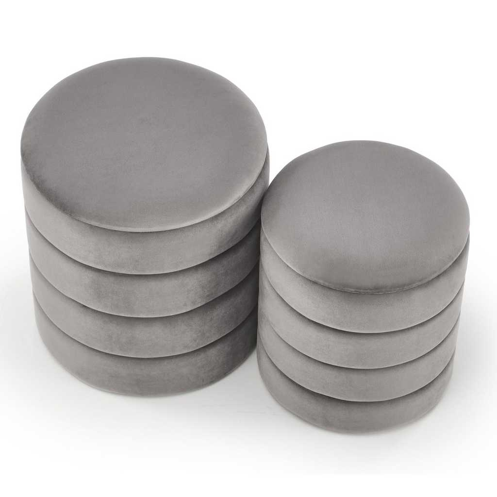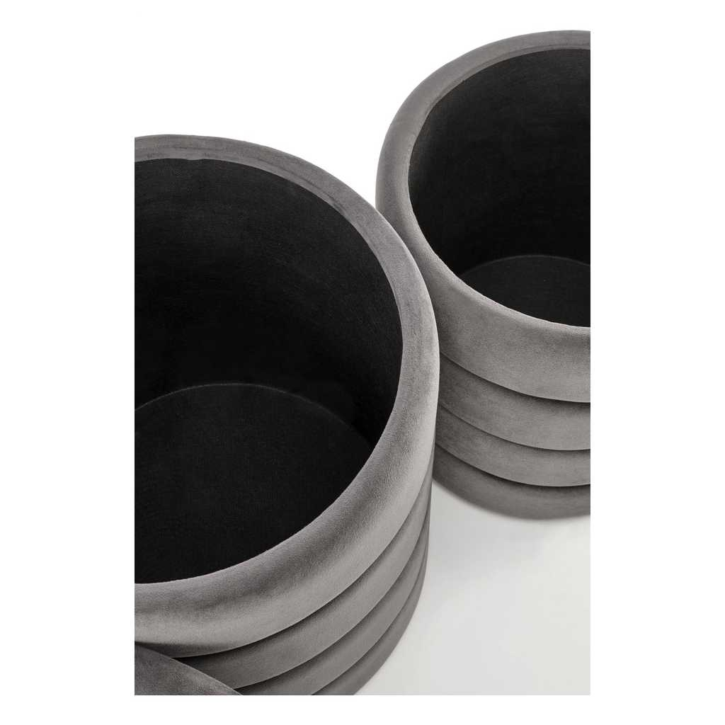 Obe taburetky majú tvar vrúbkovaného valca. Sú čalúnené príjemnou zamatovou látkou, ktorá poteší aj náročných.