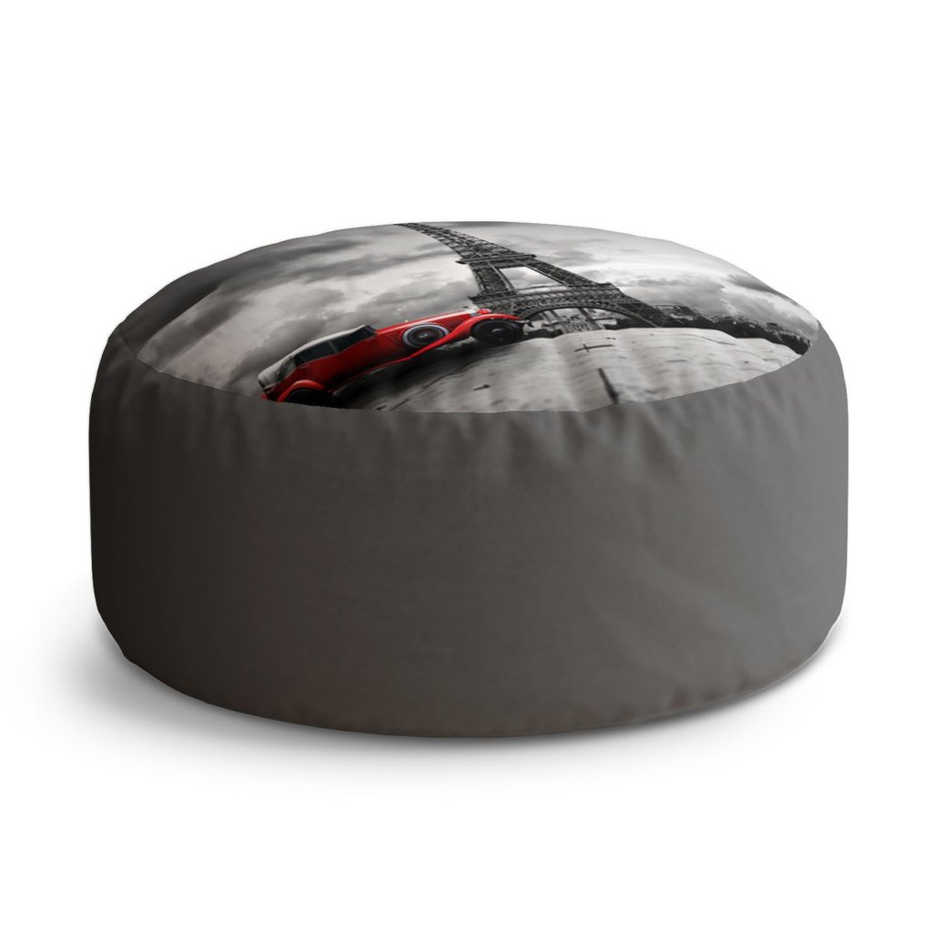 Taburet Circle Eiffel Tower s červeným autom, sivá
