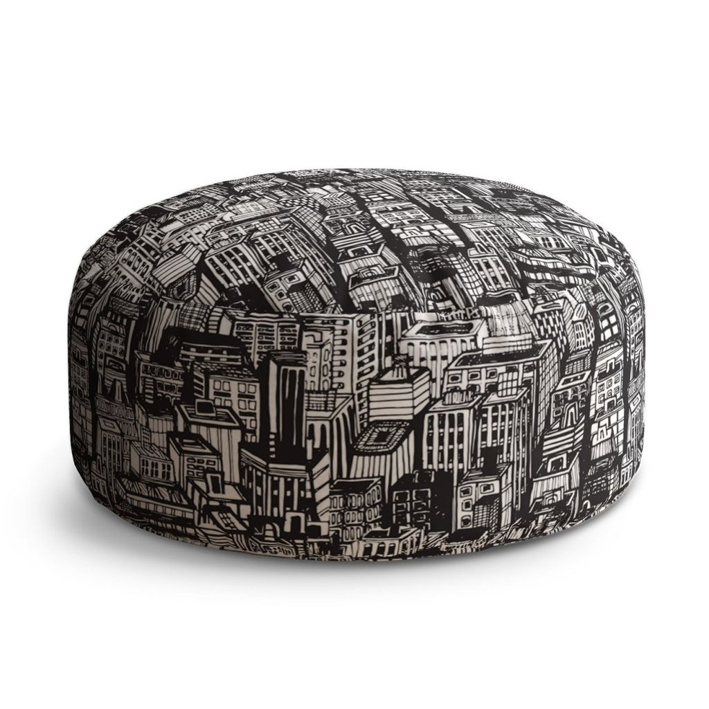 Taburet Circle kreslené mrakodrapy, čierna / biela