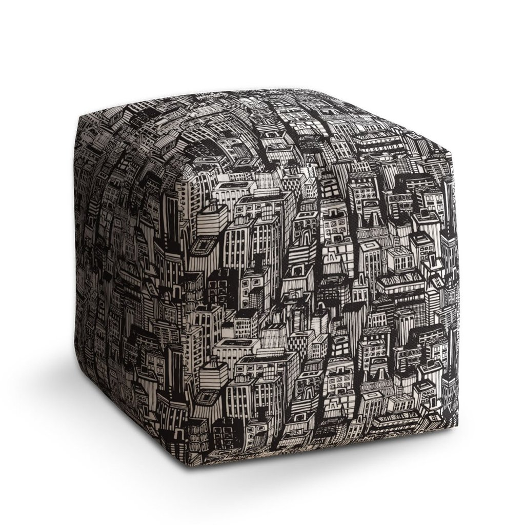 Taburet Cube kreslené mrakodrapy, čierna / biela