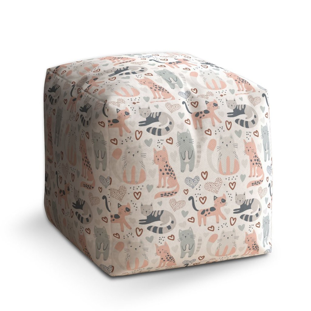 Taburet Cube maľované mačičky, farebná