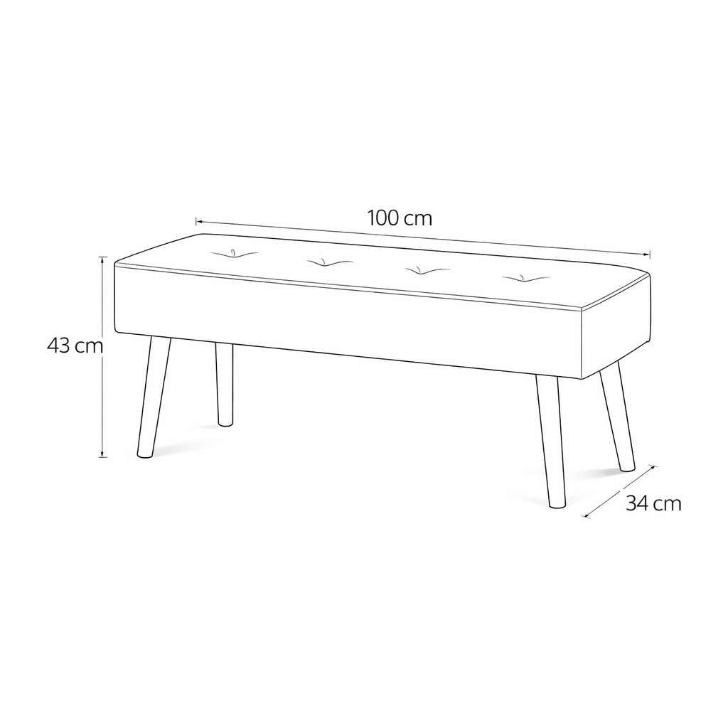Vďaka rozmerom 100 x 34 x 43 cm a pevnej konštrukcii s hmotnosťou len 8 kg je ľahko premiestniteľný podľa vašich potrieb. Výška sedu 43 cm zaručuje príjemné a ergonomické sedenie. Tento taburet je ideálny ako samostatné sedenie, ale aj ako doplnok k sedačke alebo k vašej predsieni.