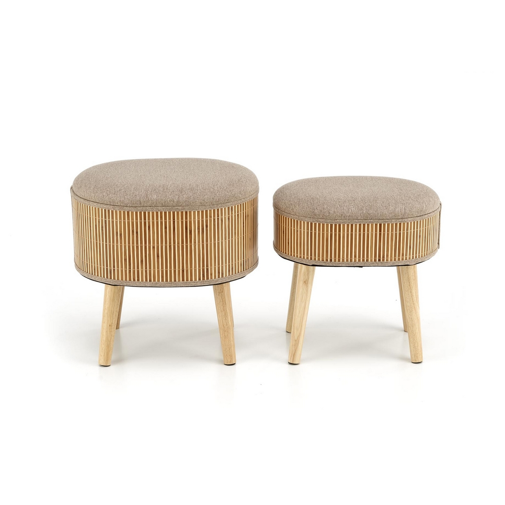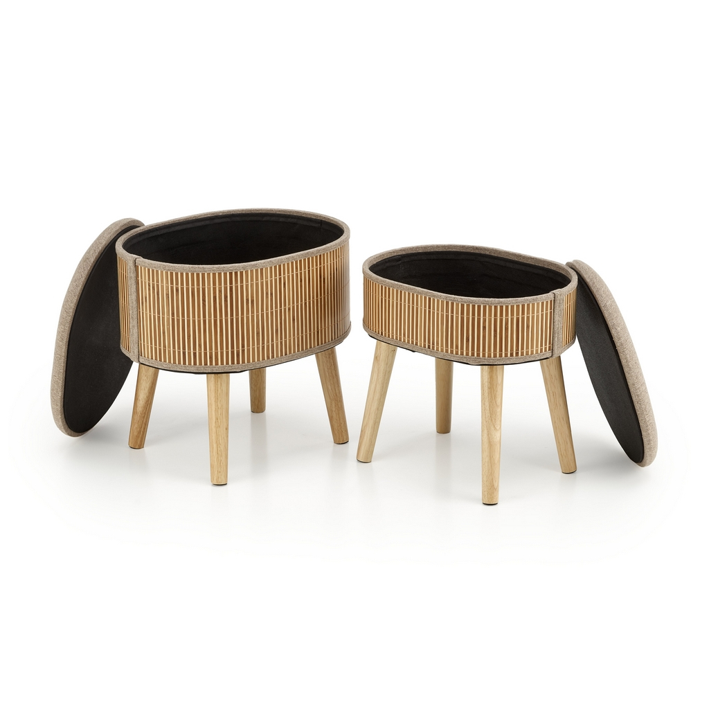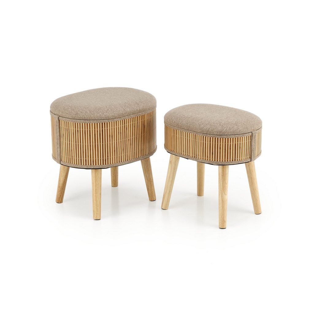 Hľadáte sofistikovaný spôsob, ako rozšíriť váš úložný priestor? Potom je sada 2 oválnych taburetov Ticco ideálnym kúskom pre vás! Jeho prevedenie v prírodných tónoch uplatníte v moderných aj klasických interiéroch.