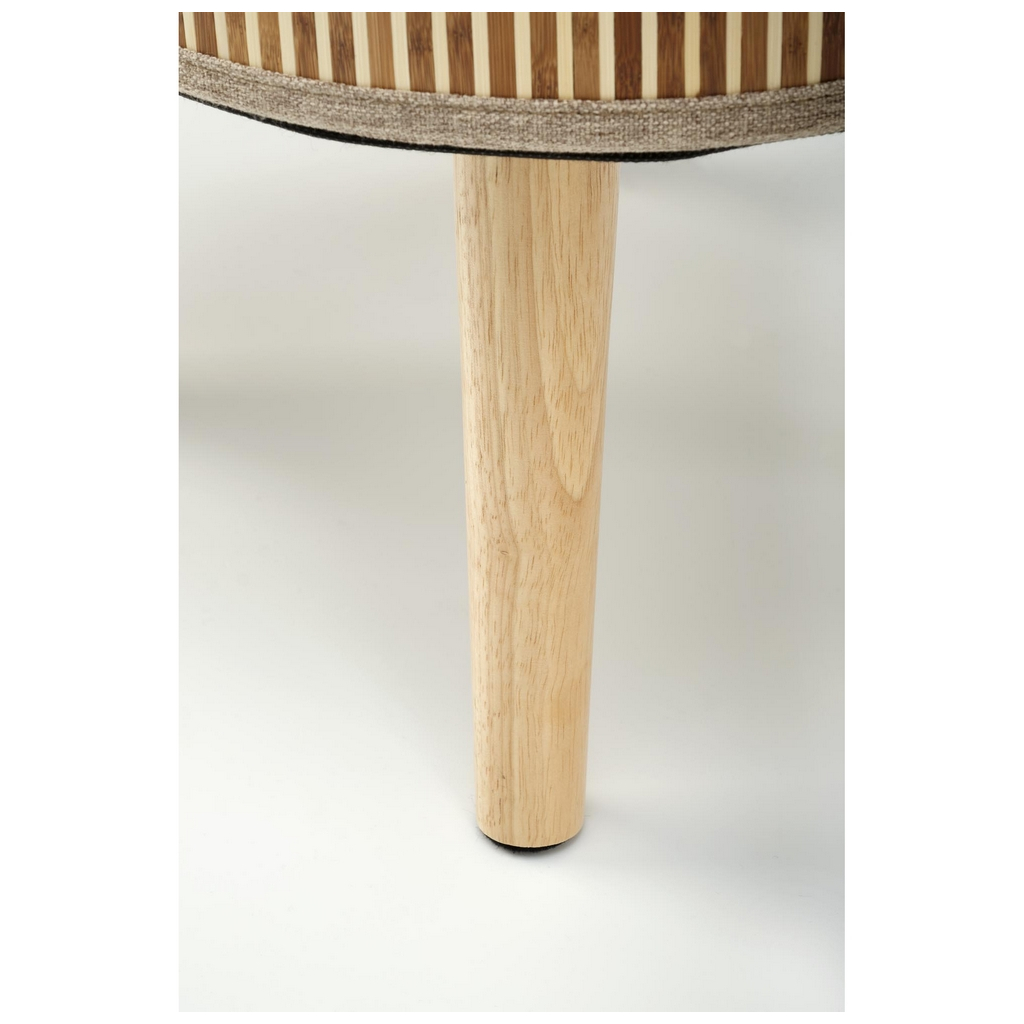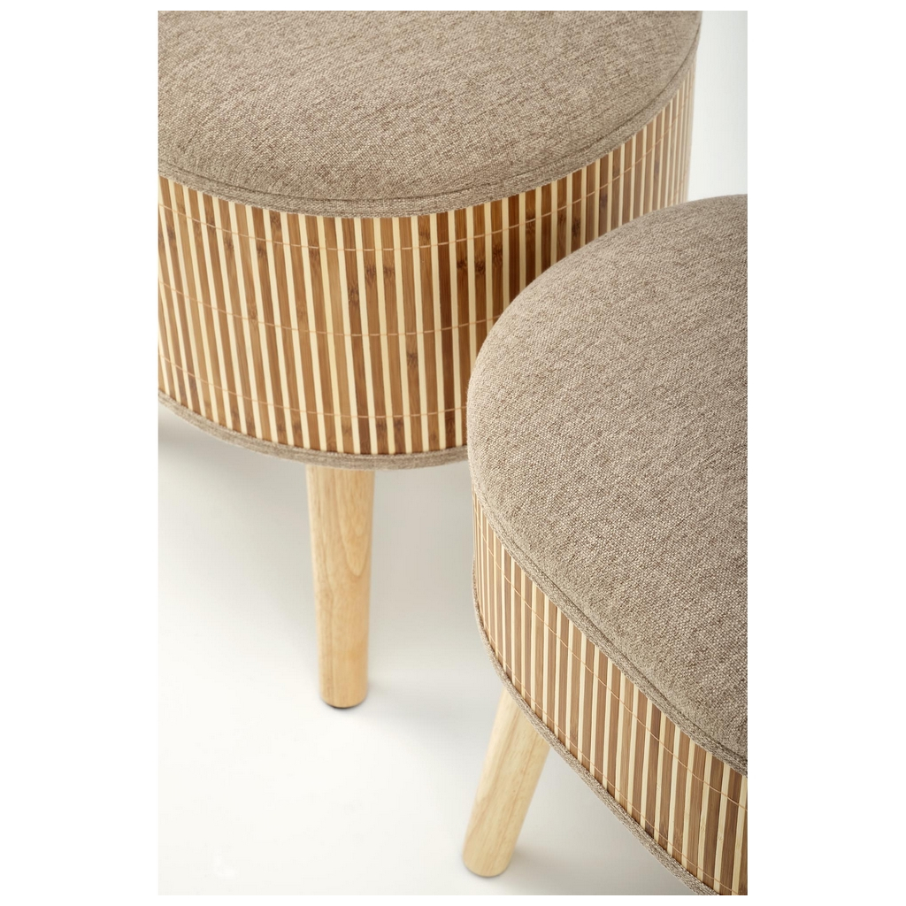 Veko je potiahnuté príjemnou látkou, po stranách taburetu nájdete drevený obklad. Taburety vynikajú svojou stabilitou, o ktorú sa starajú 4 nohy z masívneho kaučukového dreva.