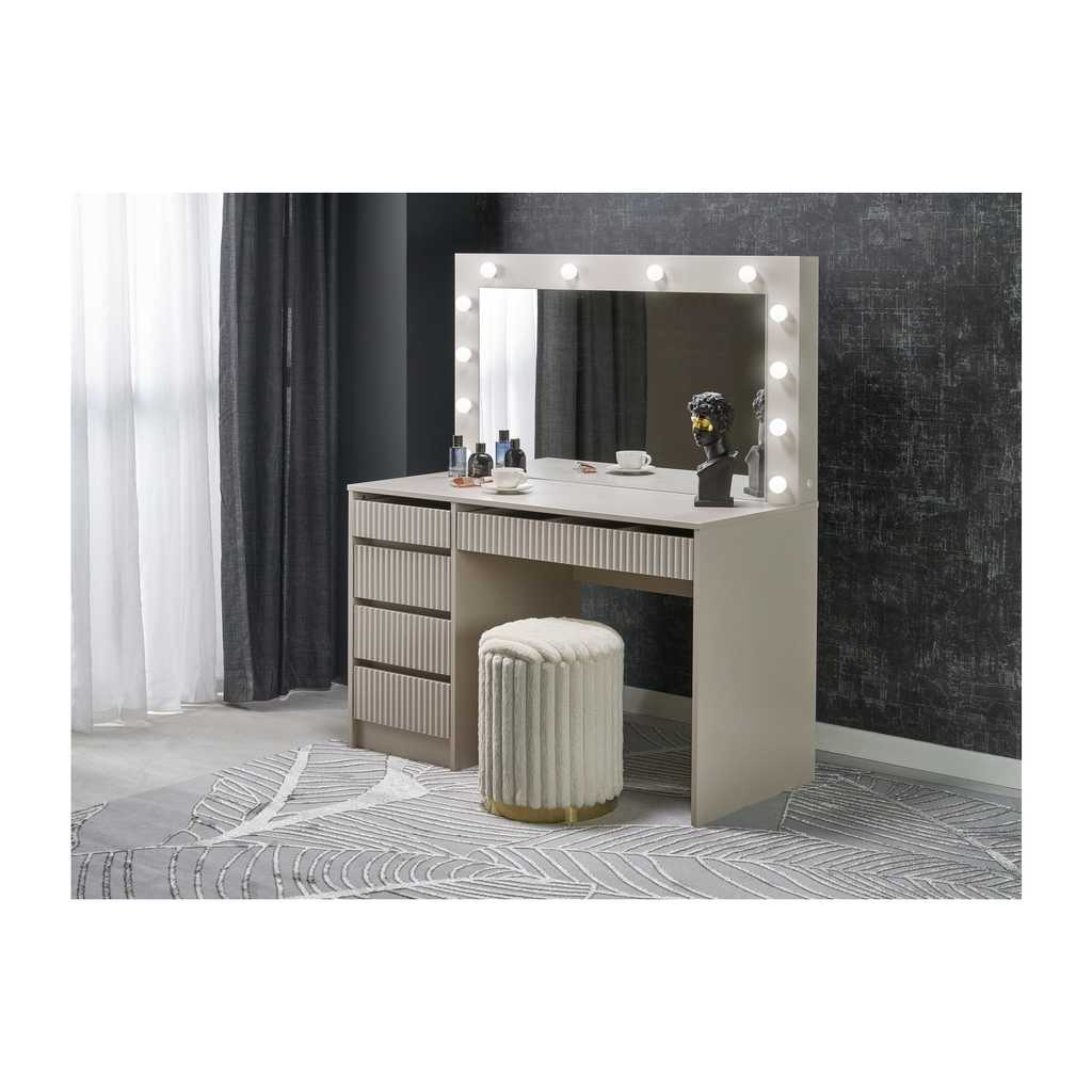 Toaletný stolík Hollywood XL II je vynikajúcou voľbou pre tých, ktorí hľadajú štýlový a funkčný kus nábytku. Kombinácia praktických úložných priestorov a komfortného zrkadla so svetlami vám uľahčí každodennú rutinu a zároveň dodá vášmu interiéru nádych elegancie.
