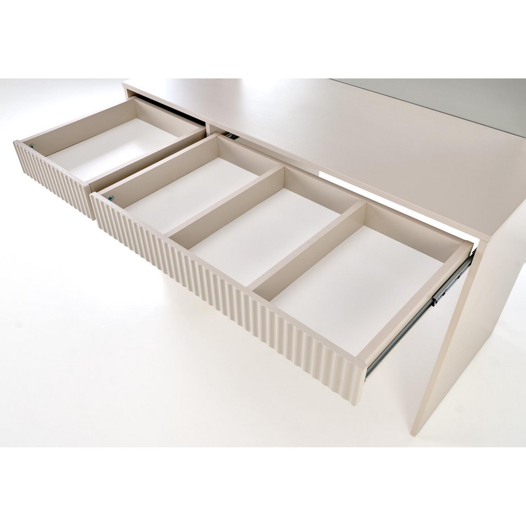 Poskytuje dostatok úložného priestoru vďaka piatim zásuvkám, ktoré vám pomôžu udržať všetky kozmetické pomôcky, šperky a iné drobnosti perfektne usporiadané a vždy po ruke. So svojou šírkou 120 cm, hĺbkou 55 cm a výškou 140 cm ponúka dostatok miesta na pohodlné používanie bez zbytočného preplnenia priestoru.