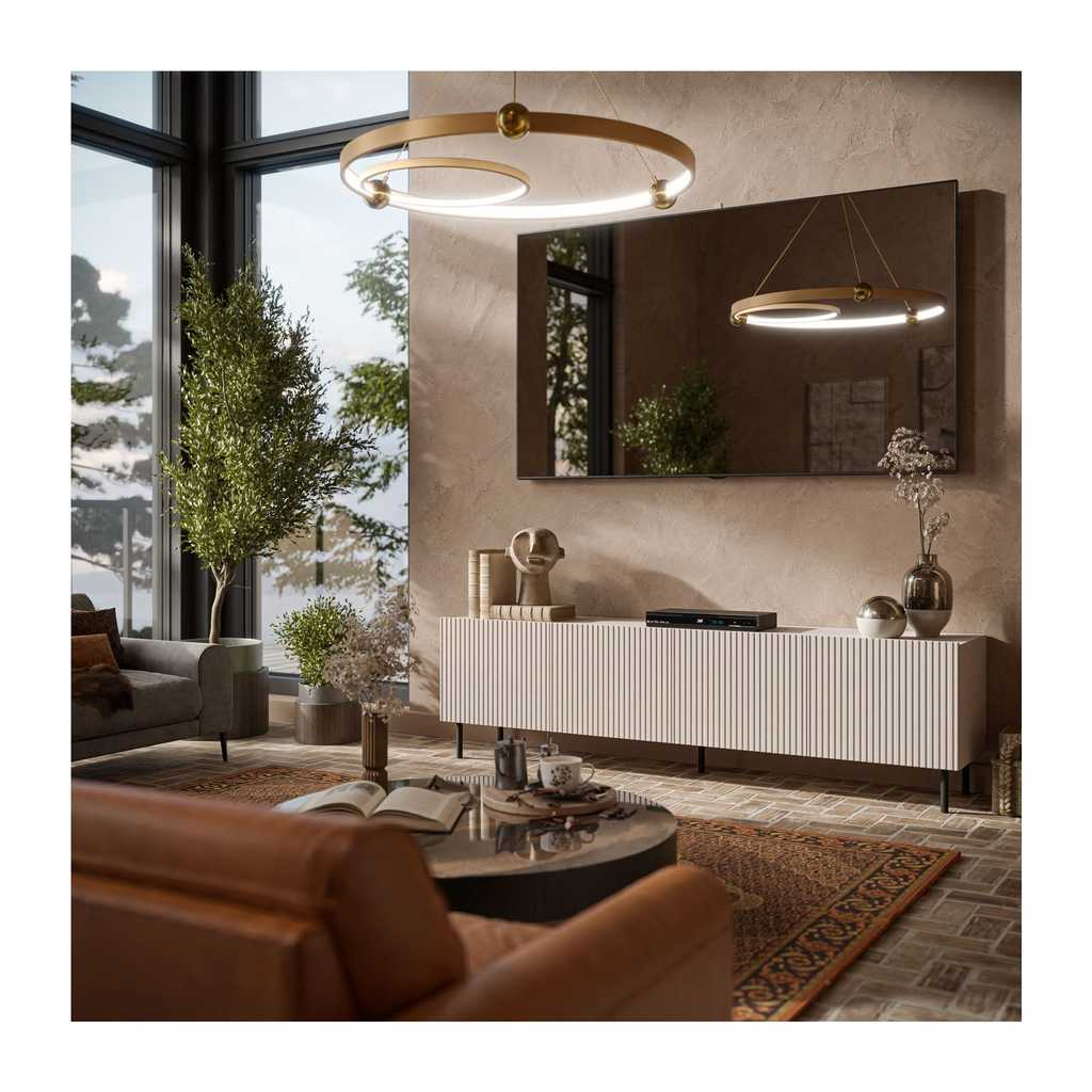 TV stolík Kensington II predstavuje ideálne riešenie pre moderné obývacie priestory, kde je dôležitý praktický úložný priestor aj štýlový dizajn. Vďaka svojej dĺžke 200 cm ponúka dostatok miesta pre vaše elektronické zariadenia a dekorácie. Horná doska z dreva dodáva stolíku prirodzený vzhľad a zároveň garantuje pevnosť a trvanlivosť.