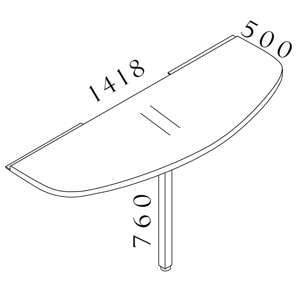 Ukončovací prvok Visio LUX s rozmermi 141,8 x 50 cm odporúčame na elegantné zakončenie stolov. Vzhľadom k rozmerom prvku musí byť pristavený k rovným stolom s celkovou plochou 141,8 cm, čo je hĺbka dvoch rovných stolov vrátane paravánu. Ukončovací prvok je tiež skvelým doplnkom na rozšírenie pracovného priestoru.