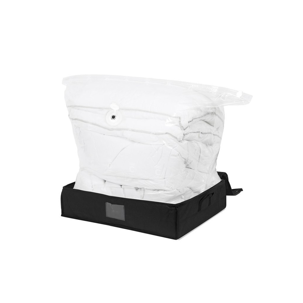 Vak úložného boxu je vyrobený z polyethylénu, vďaka čomu sa aj po niekoľkých vypusteniach a napusteniach vzduchu jeho základný tvar nemení. Uložené textílie tak vyberiete v rovnakom stave, v ktorom ste ich vložili.