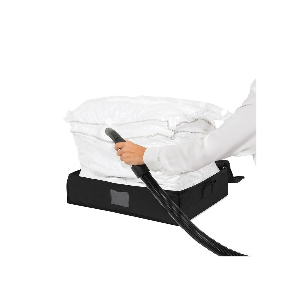 Vložený obsah odporúčame uzavrieť plastovým zipsom a prebytočný vzduch následnej odsať pomocou ventilu. Ventil funguje jednocestne a je kompatibilný s klasickými domácimi vysávačmi.