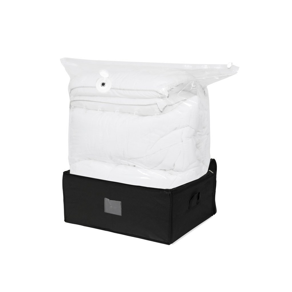 Vak úložného boxu je vyrobený z polyethylenu, vďaka čomu sa aj po niekoľkých vypusteniach a napusteniach vzduchu jeho základný tvar nemení. Uložené textílie vyberiete v rovnakom stave, v ktorom ste ich vložili.