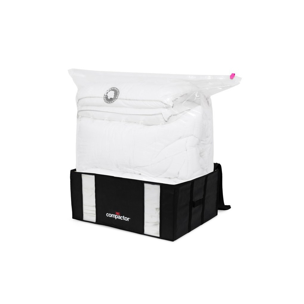Kompresné vrecko je praktickým doplnkom do kancelárii aj do domácností. Disponuje rozmermi 65 x 50 x 27 cm a jeho najväčšou výhodou je kompresia uskladnených textílii až o 75 %.
