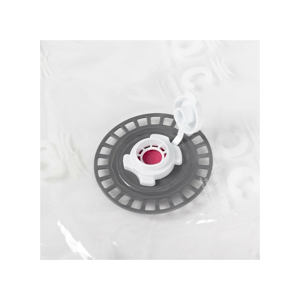 Vložený obsah odporúčame uzavrieť plastovým zipsom a prebytočný vzduch následne odsať pomocou ventilu. Ventil funguje jednocestne a je kompatibilný s klasickými domácimi vysavačmi.
