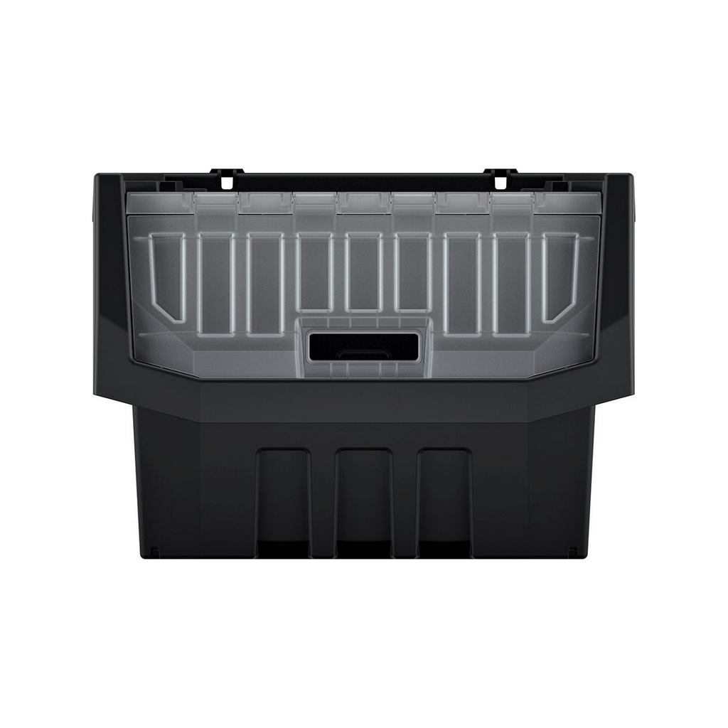 V tomto balení nájdete úložný box o veľkosti 39,6 × 29 × 28 cm (dĺžka × šírka × výška) s ochranným vekom, ktorý vám pomôže si v dielni či garáži udržať poriadok a zároveň mať všetko po ruke. Svojimi rozmermi je ideálna na uloženie väčších položiek, ako je napríklad ručné náradie.