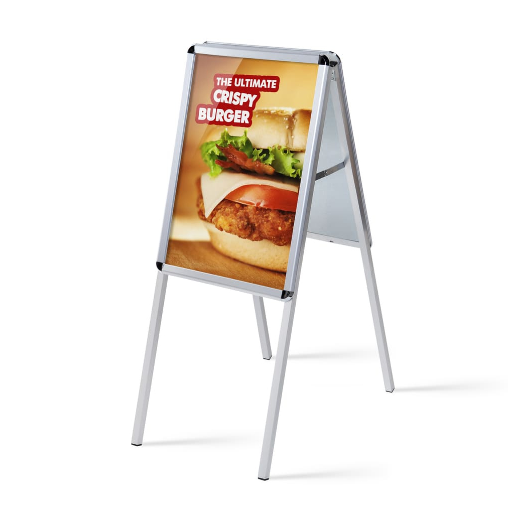 Reklamný áčkový pútač sa stane neoceniteľným marketingovým pomocníkom v akomkoľvek prostredí. Má elegantný dizajn, je odolný voči nárazom vďaka plechovým zadným stenám. Výmena plagátov pomocou klaprámového systému je jednoduchá a rýchla – stačí len odklopiť jednu alebo viac strán rámu a váš obsah pohodlne vložiť. Disponuje skvelou stabilitou a UV fóliou, ktorá zaistí ochranu vašich tlačovín.