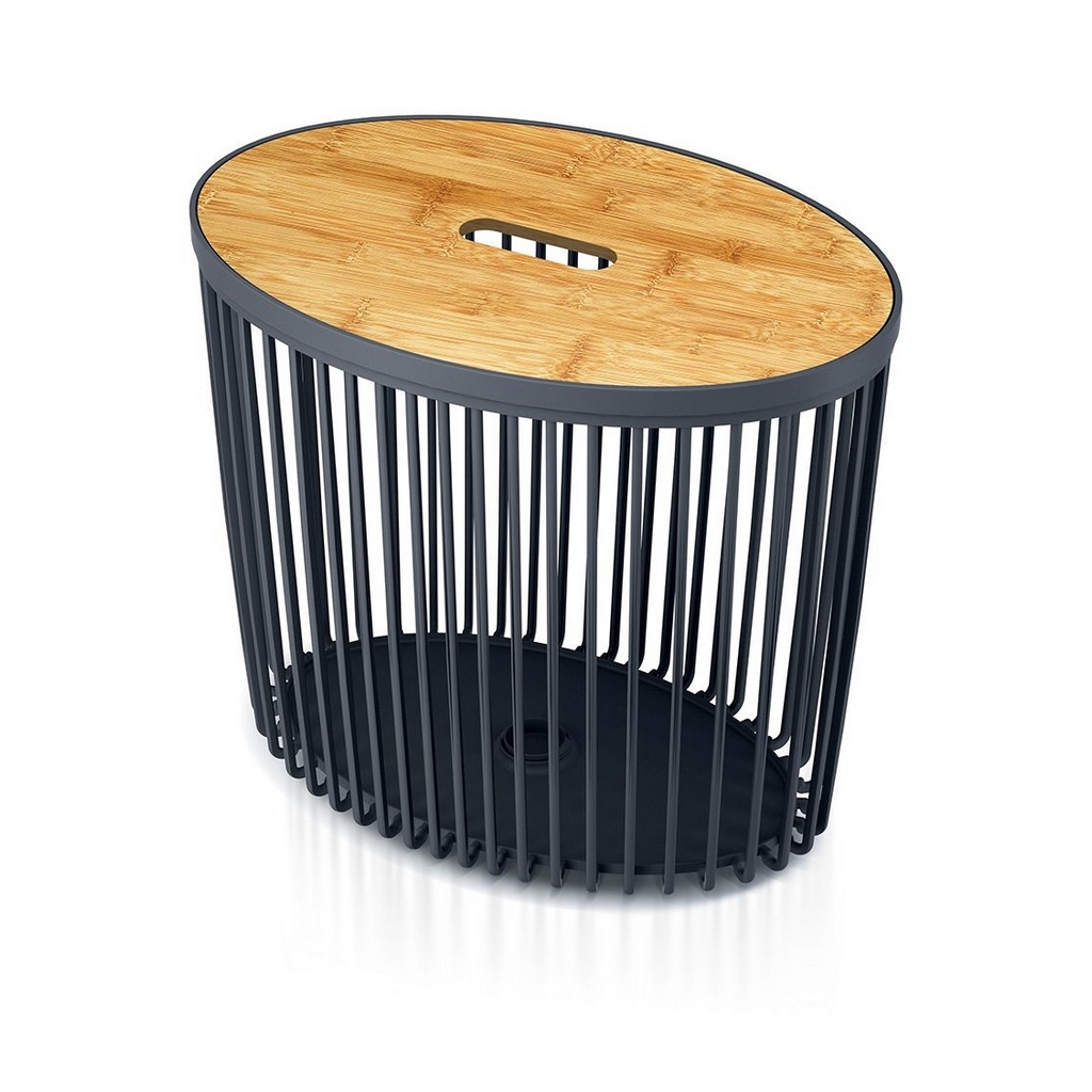 Tento kôš v sebe elegantne spojuje funkcie odkladacieho stolíka a úložného priestoru. Na bambusové veko si môžete odložiť napríklad čaj alebo knihu, priestor pod ním potom využijete napríklad pre uloženie diek. Ponúka sa ale i dekoratívne využitie – do koša môžete dať napríklad farebné balóniky alebo kvetiny. Kreativite sa medze nekladú.