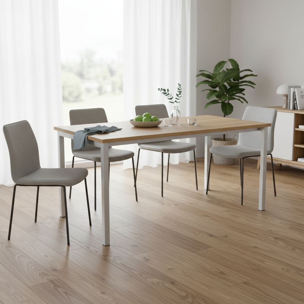Univerzálny stôl s kovovou podnožou je ideálnou voľbou pre rôzne typy priestorov – od jedální, cez kancelárie až po rokovacie miestnosti alebo menšie dielne. Jeho pevná kovová podnož zabezpečuje stabilitu a dlhú životnosť, pričom nosnosť až do 120 kg vám umožní pohodlne umiestniť rôzne predmety alebo vybavenie.