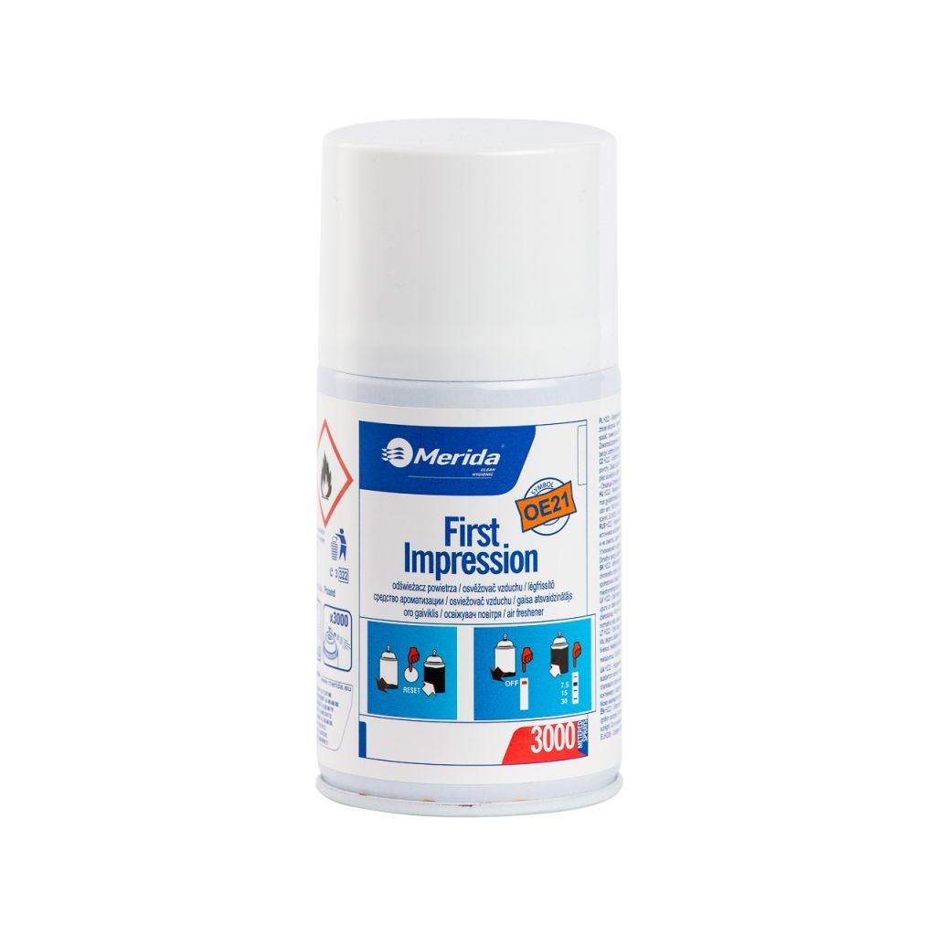 Príjemná vôňa do osviežovača vzduchu FIRST IMPRESSION zaistí dlhotrvajúcu vôňu v hoteloch, penziónoch, kanceláriách či konferenčných sálach. Účinne eliminuje nepríjemný zápach a navonia miestnosť. Zásobník obsahuje 3000 dávok vône a zvládne navoňať vzduch v miestnostiach do 170 m3.